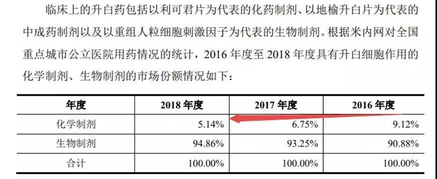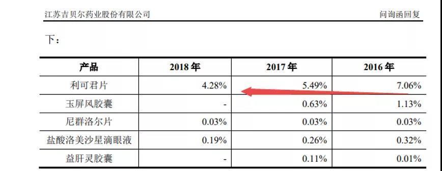 吉贝尔募投主项目也是以利可君片为主体的生产基地建设,占募投项目总投资的60%以上,然而,招股书第128页显示,临床上的升白药包括以利可君片为代表的化药制剂市场份额情况逐渐降低,已从2016年度的9.72%下降到2018年的5.14%,而根据审核问询函407页披露的可获取的市场数据信息,利可君片的市场占有率也从2016年的7.06%下降到2018年的4.28%。这一点也值得吉贝尔投资者关注。