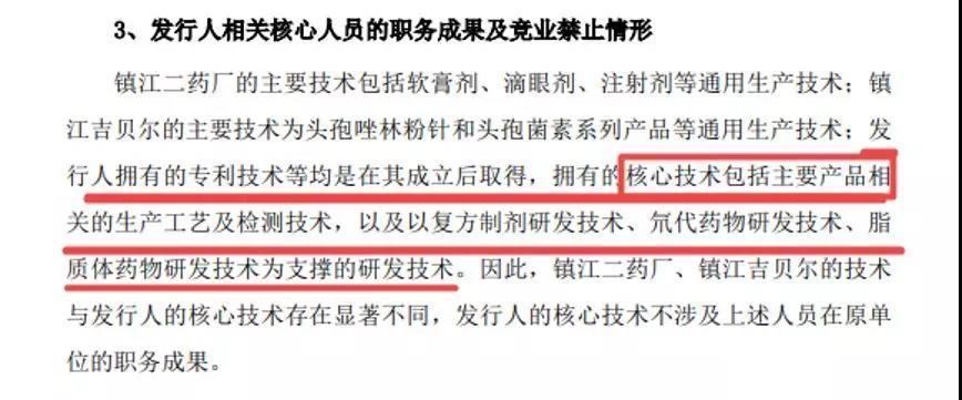 据审核问询函回复,吉贝尔称拥有的专利技术包括主要产品相关的生产工艺等都是在公司成立以后取得的,与镇江二药厂和镇江吉贝尔无关。