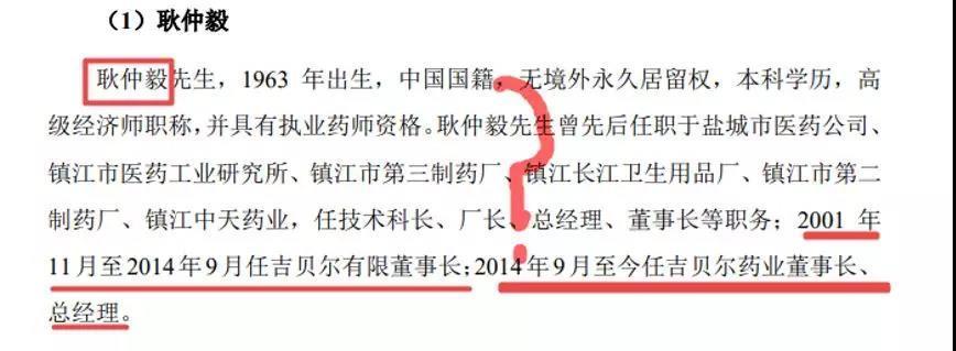 实控人耿仲毅在招股书披露的简历十分简单。在2001年11月之前的简历没有具体到年、月,只是简单罗列工作的单位,在这些单位具体工作时间和工作职位则没有披露。尤其是与吉贝尔关系错综复杂的镇江市第二制药厂和镇江吉贝尔药业公司(简称“镇江吉贝尔”)的工作时间和任职情况。