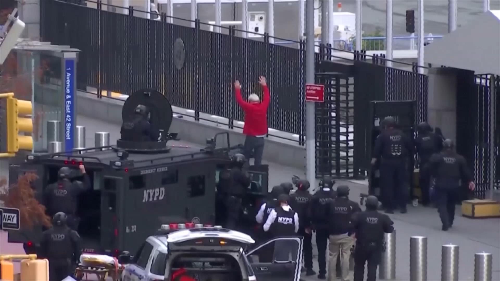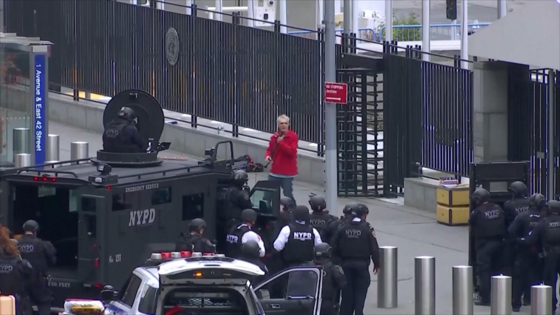 当天中午,纽约联合国总部附近一个公交车站出现一名持枪男子,纽约市警方随即封锁附近道路。联合国总部也通过邮件、办公系统发出警告,要求所有人员暂时不得出入联合国总部。