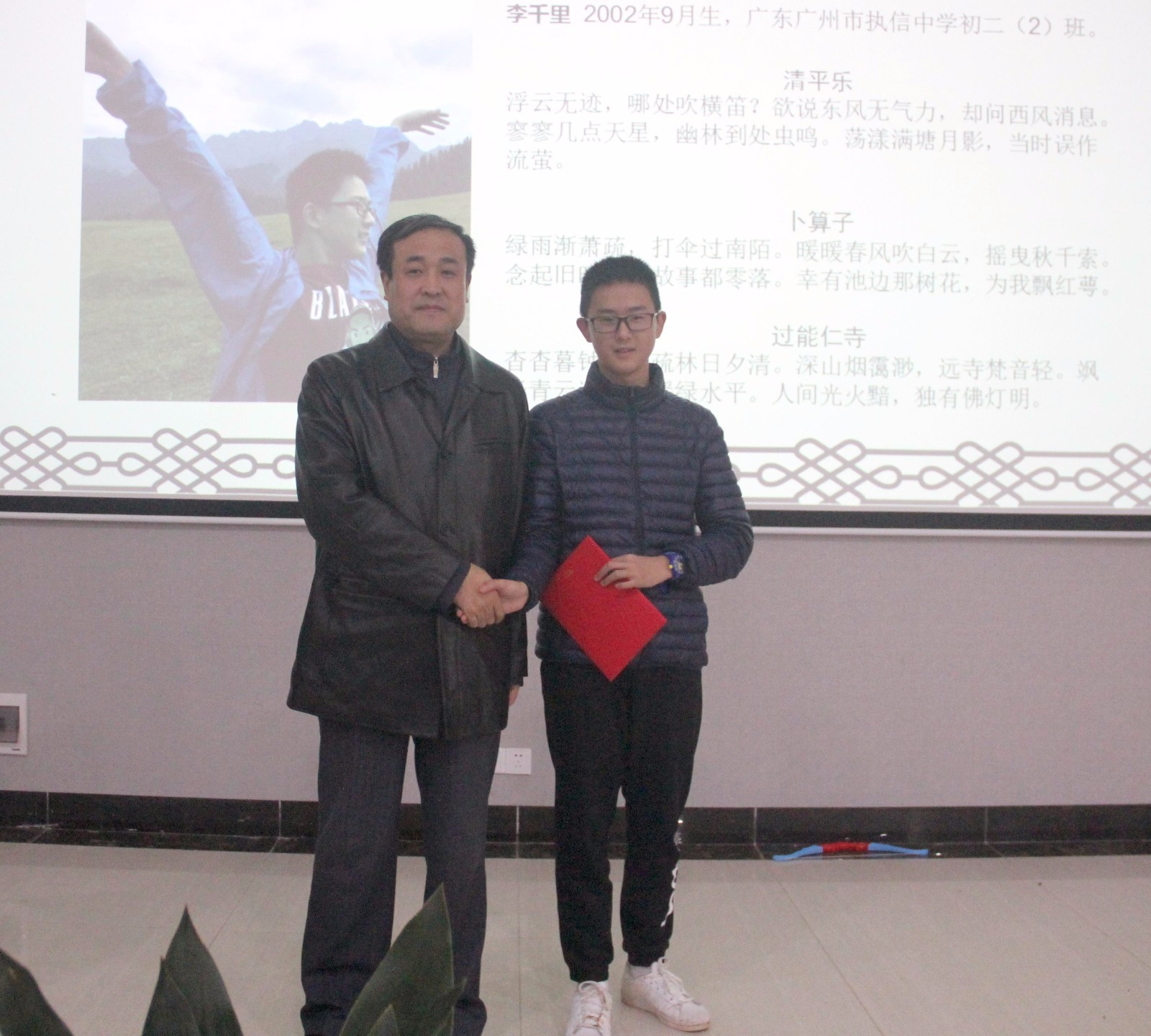 为了保证首届“湘天华杯”全国青少年传统诗词大赛的公平、公正,特意在双十一前夕启动了由熊东遨先生主持,张海鸥、黄坤尧两位教授参评,中国扶贫开发协会顾问杜远明、中国楹联学会创建人常江等人见证的面试环节。现场以随机抽取试题的方式,检验获奖者的基本水平,取得了令人满意的结果。