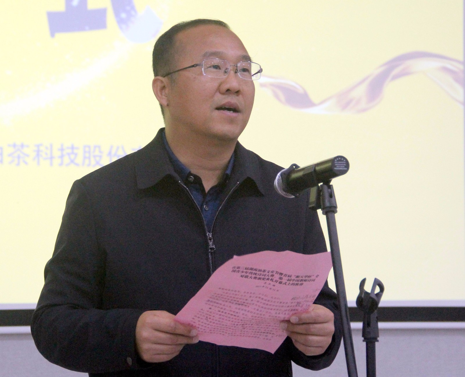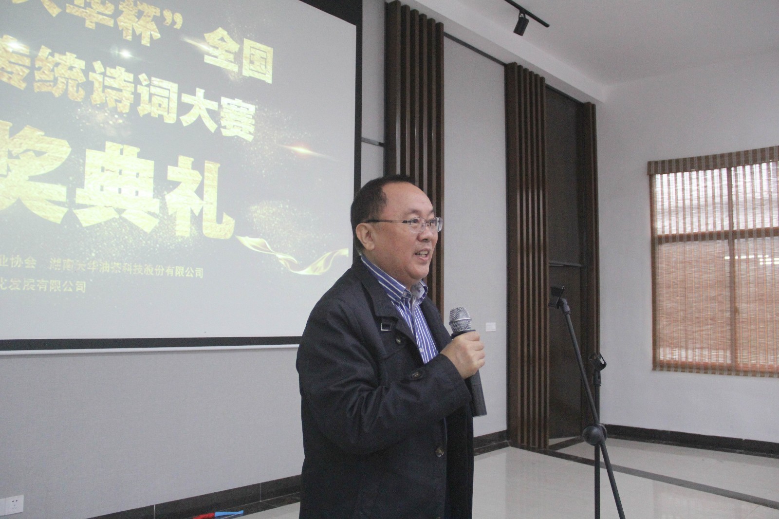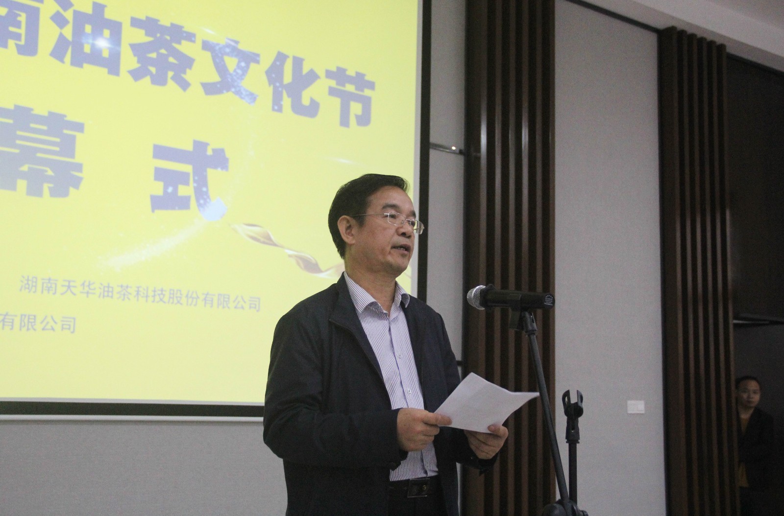 湖南省文化厅副厅长鄢福初在开幕式上讲话,对文化节的举办表示热烈的祝贺,对湖南天华油茶公司致力于油茶文化、诗词文化和道家文化的传承与弘扬给予充分肯定,并寄语天华公司不忘初心,砥砺前行,为湖南油茶产业的发展和传统文化的推广做出更大贡献。