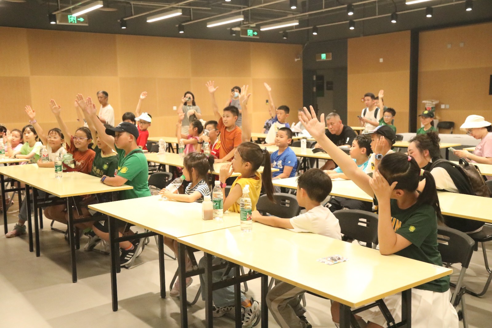 在新闻发布厅,孩子们不仅上台“模拟”了一场新闻发布会,还进行了工体知识问答。工作人员提出问题后,孩子们纷纷举手回答,现场笑声连连,孩子们不仅加深了对工体的认识与了解,也收获了一份精美的小礼品。