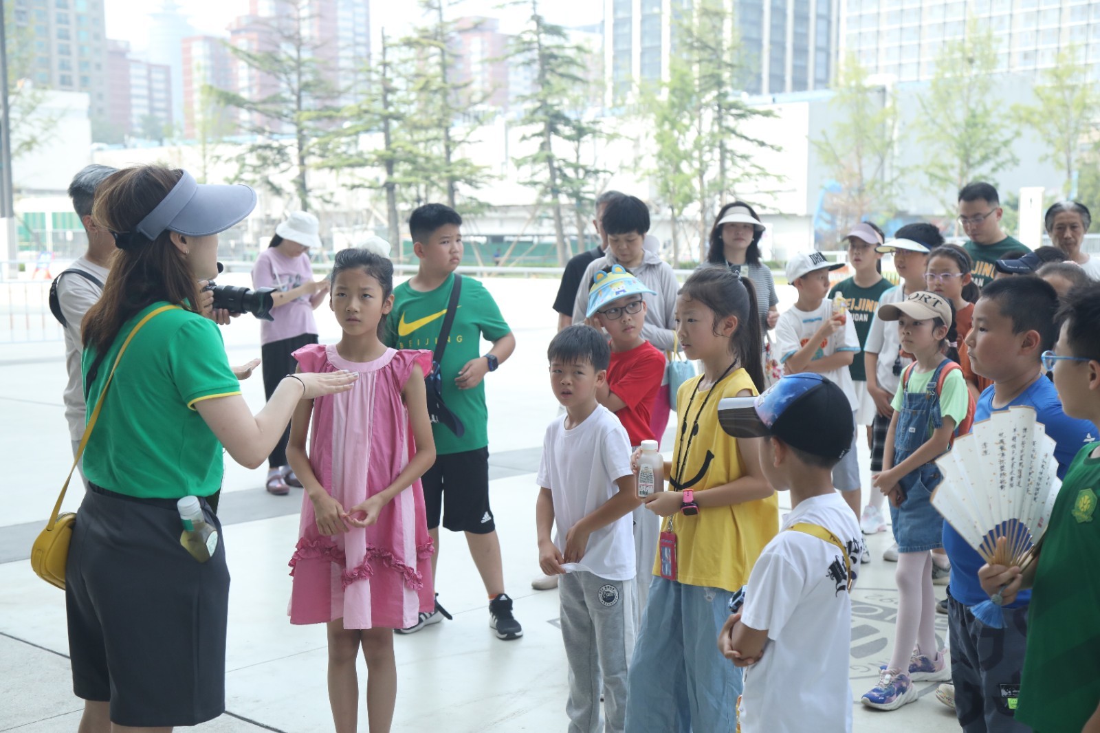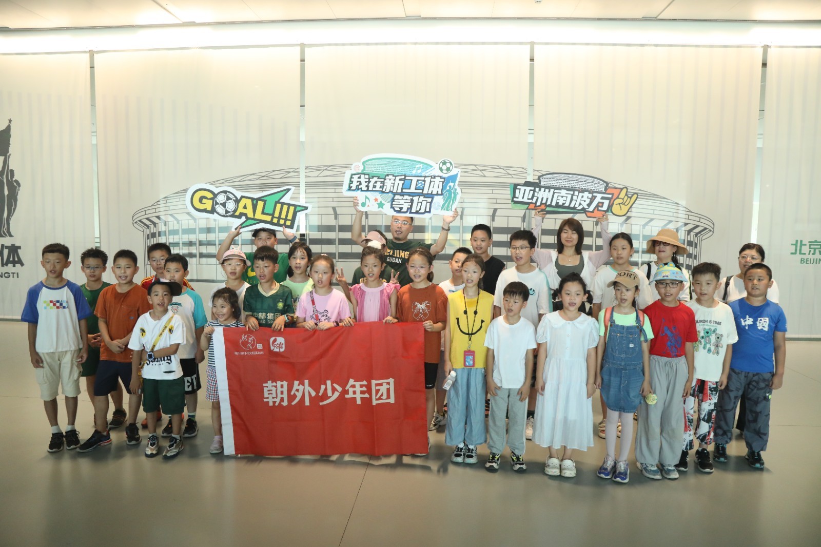 37度的高温也无法阻挡孩子们的热情。大家从工体西门进入场馆,一路上,工作人员讲解了新工体外墙的独特之处。