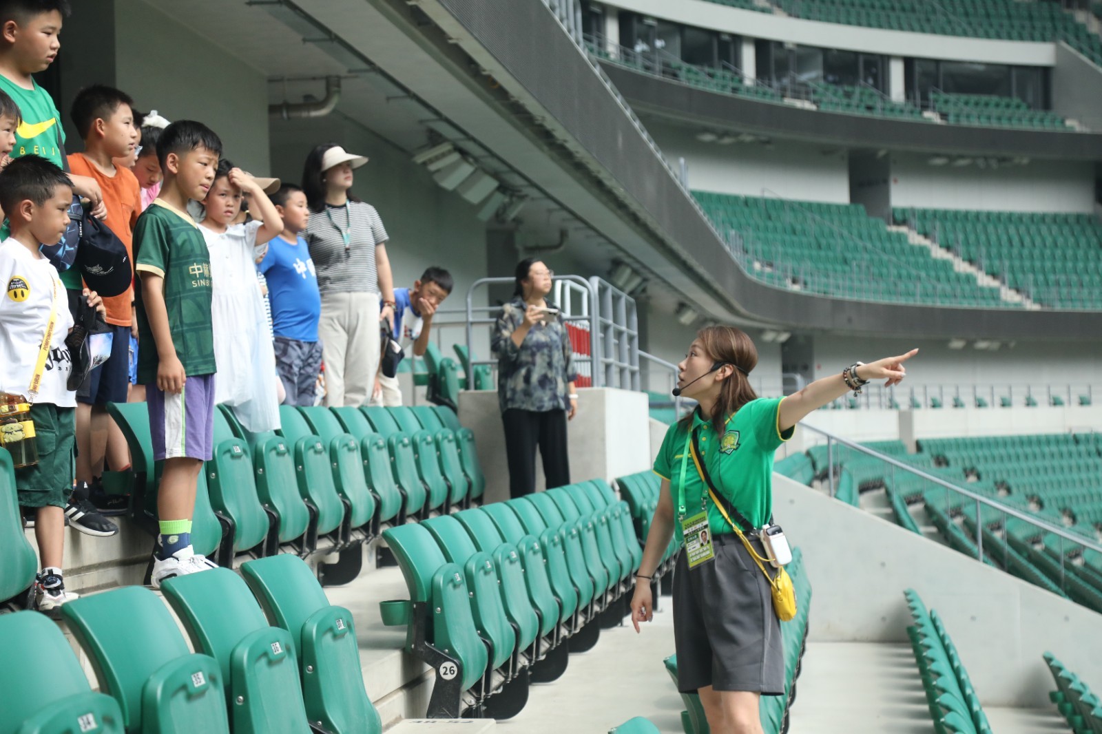 在此次走进新工体的活动中,孩子们转变身份,从“球迷”变身为“探访者”,在讲解中了解场馆内的建筑工艺与设施巧思,以科学、环保、美观的新视角看待这座历史悠久的城市“新地标”。