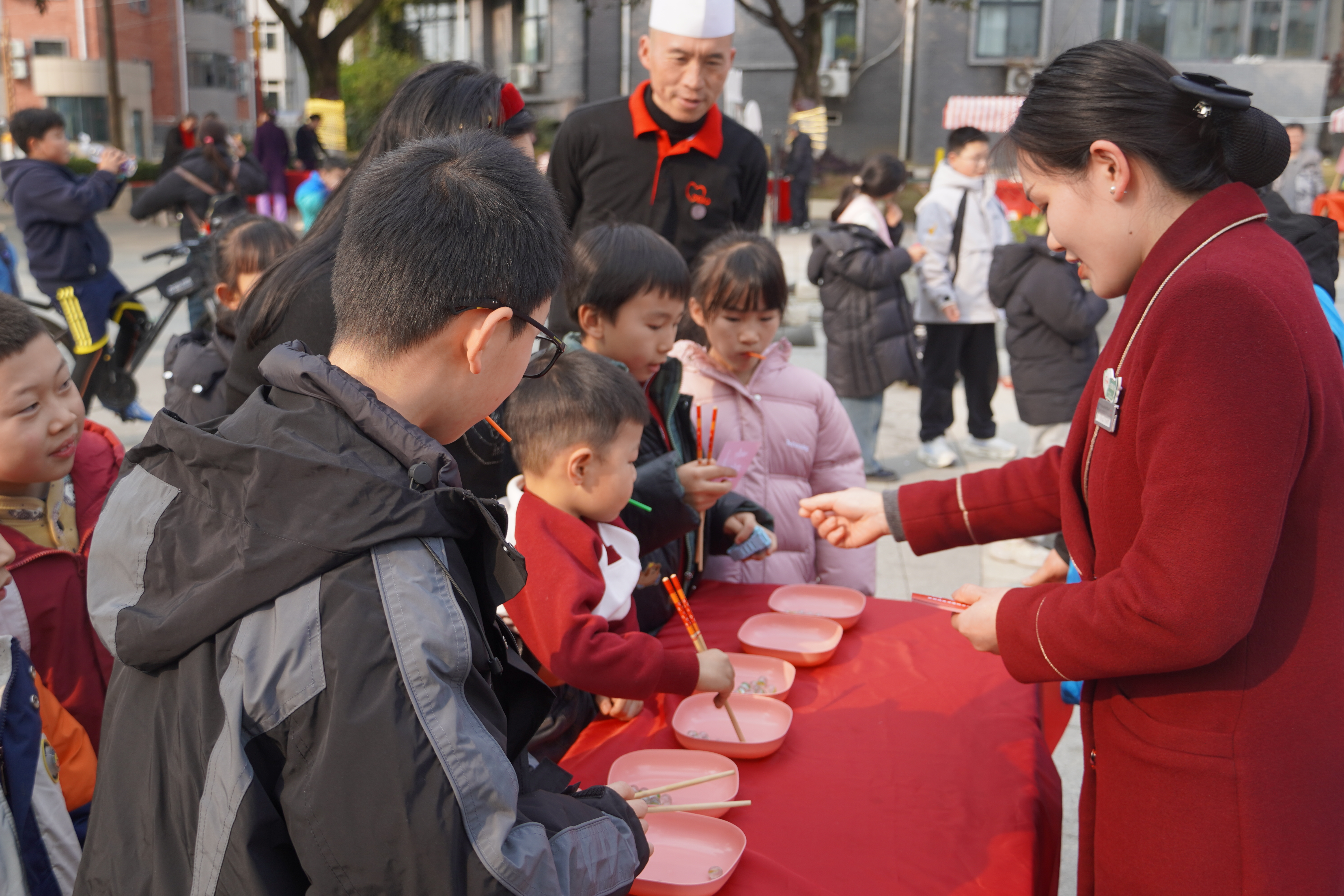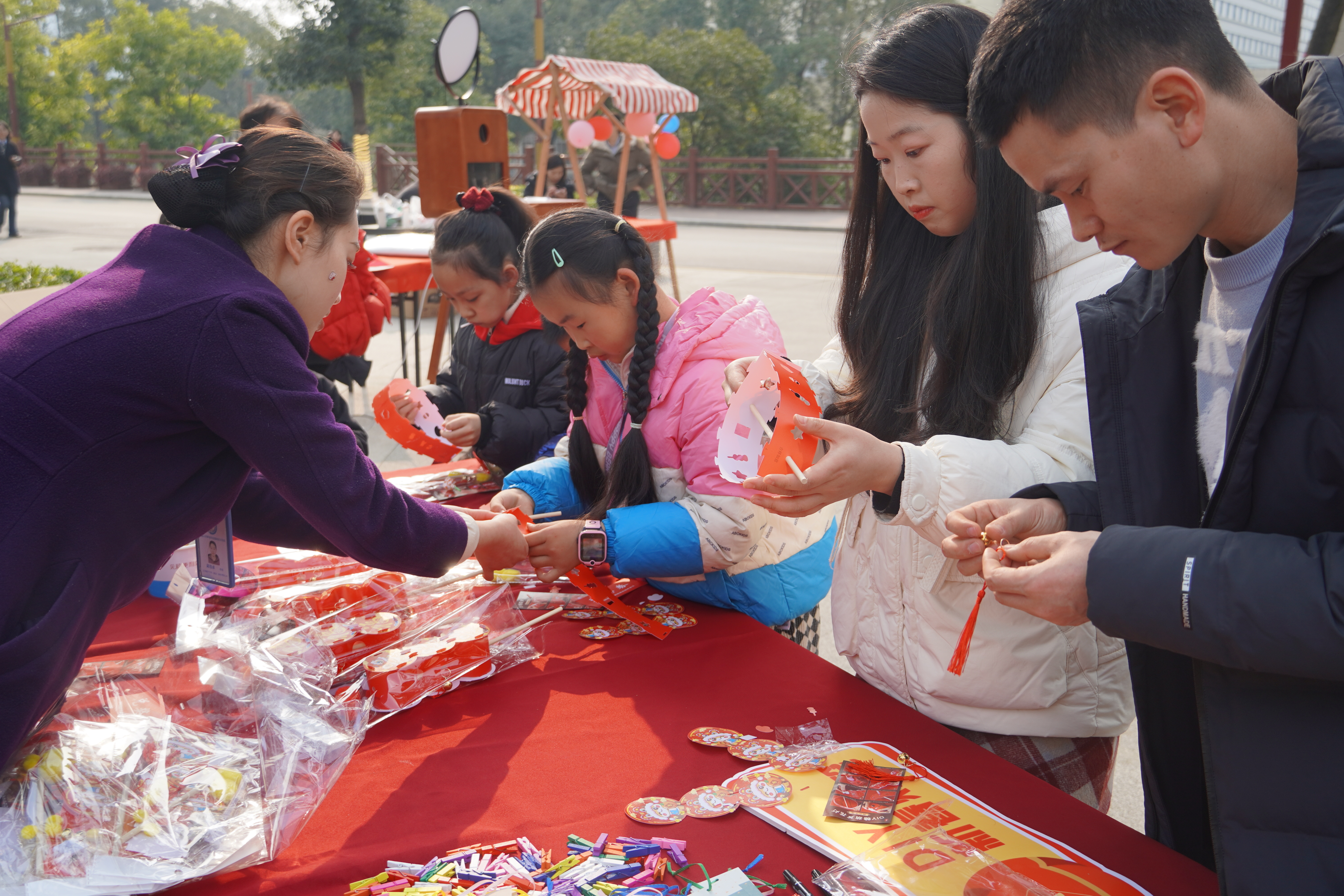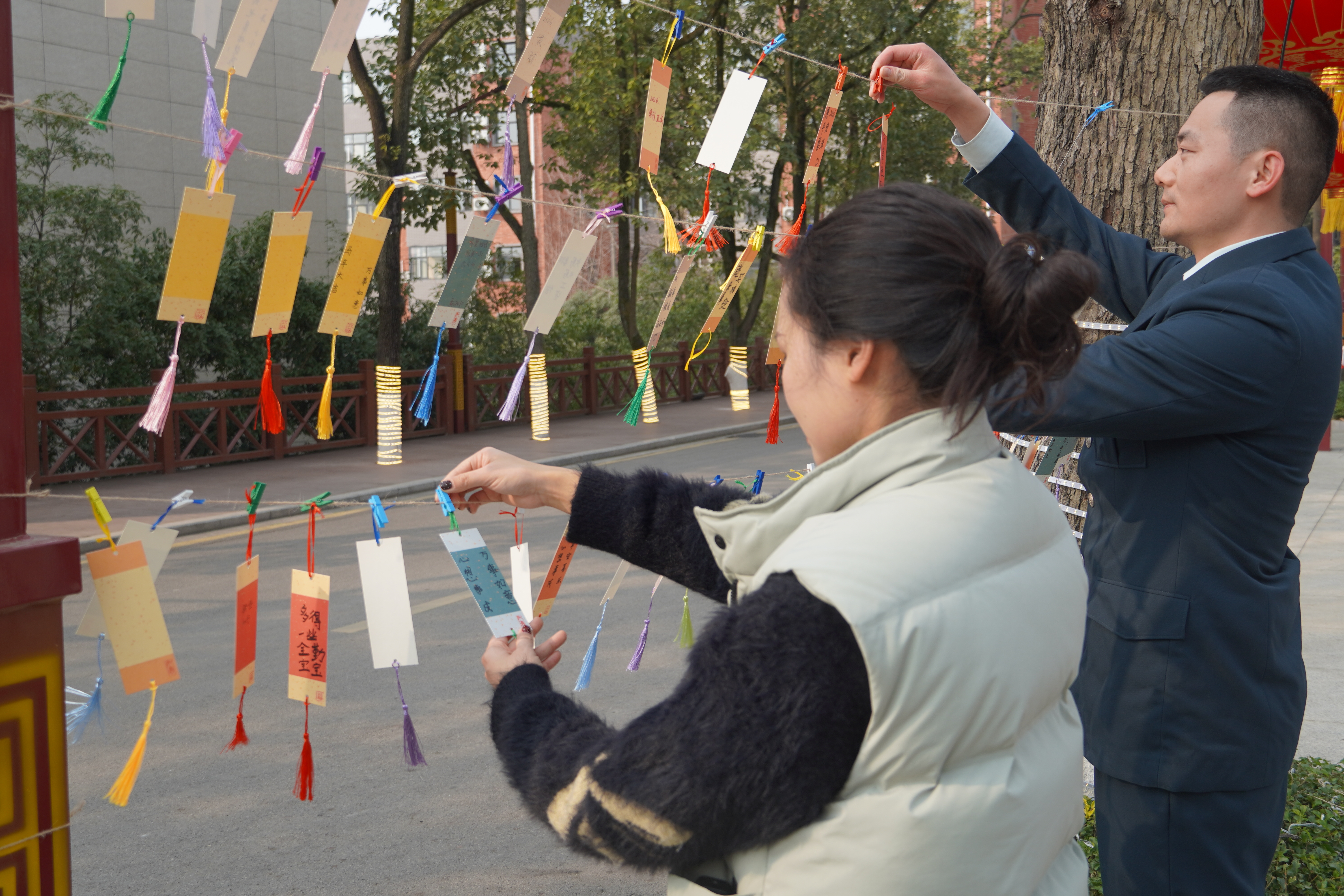 除了舌尖上的满足,文化体验区同样热闹非凡,成为年货节的一大亮点。现场设置了写春联、扎灯笼等传统民俗体验环节,大家挽起袖子、踊跃参与,笔墨挥毫间,一幅幅寓意吉祥的春联新鲜出炉;巧手翻飞中,一个个色彩艳丽的灯笼点亮年味。另一边,精彩的川剧变脸表演引得阵阵喝彩,传统民俗小游戏区更是排起长队,官兵与家属们携手互动,欢呼声、笑声此起彼伏,将节日氛围推向高潮。