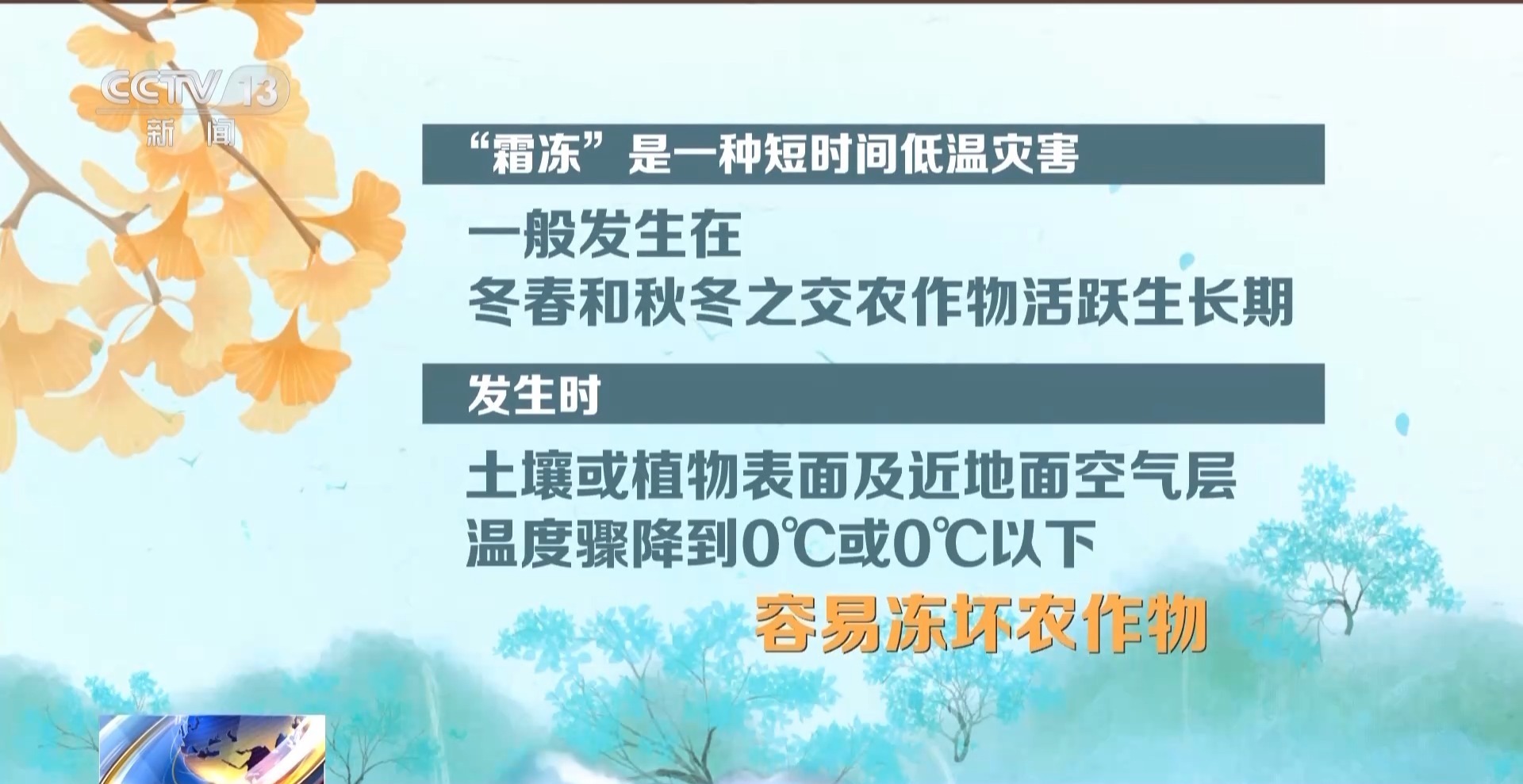 霜冻是一种短时间低温灾害,一般发生在冬春和秋冬之交农作物活跃生长期。发生时,土壤或植物表面及近地面空气层温度骤降到0℃或0℃以下,容易冻坏农作物。
