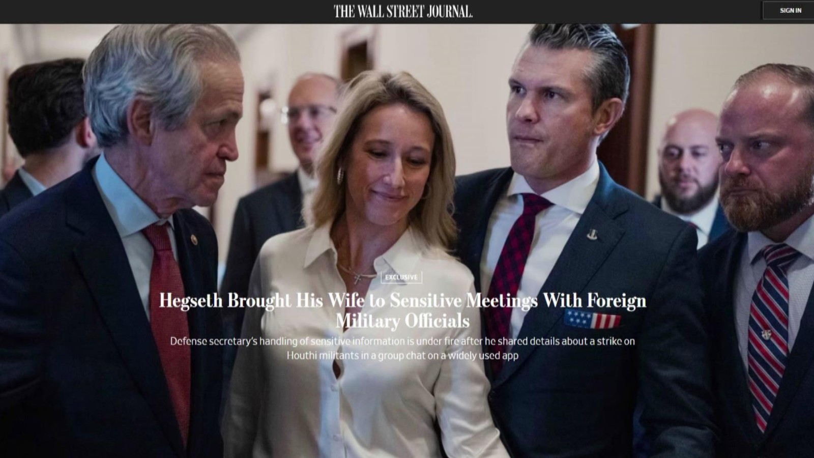 《华尔街日报》报道说,赫格塞思的妻子詹妮弗·赫格塞思近期参加了美英国防部长讨论乌克兰问题及两国军事合作的会议,还出席了北约总部一次有关乌克兰问题的闭门会议。这两次会议都涉及大量机密信息。一些在场外国官员不认识她,一些则对其在场感到惊讶。