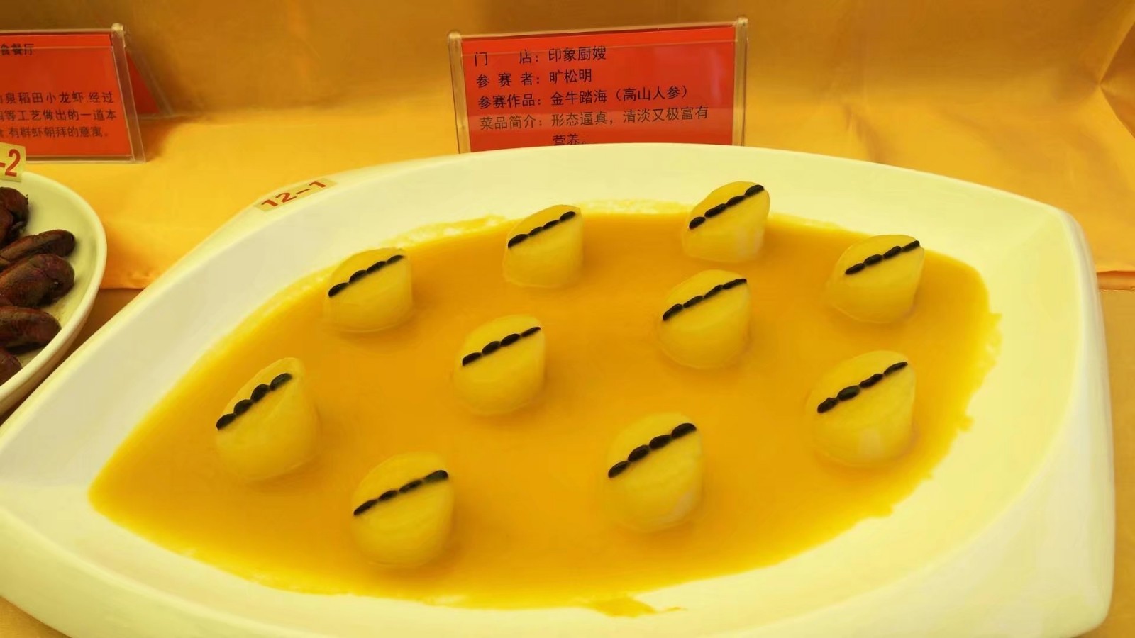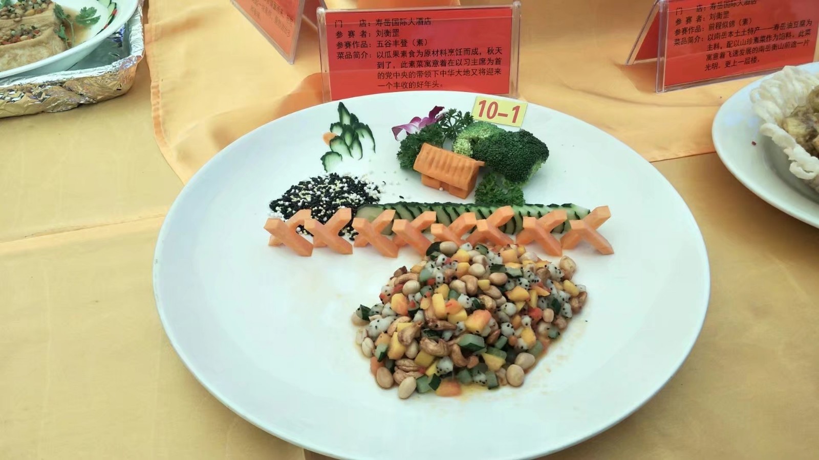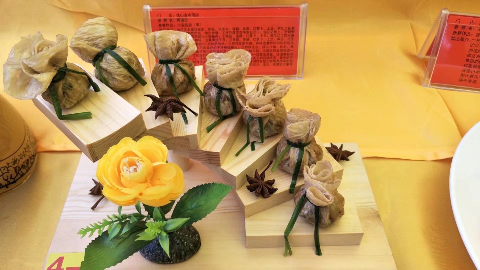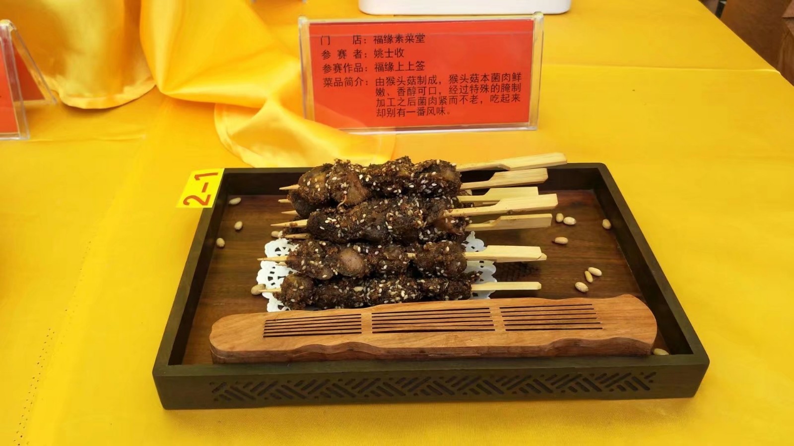 南岳作为“中国素食之乡”,此次美食烹饪大赛有众多菜品均为素菜,由猴头菇制作的“上上签”、传统素菜“养生豆腐汤”、还有由正宗本地豆腐皮、香菇、花生米、莲藕、韭菜、红萝卜、土豆、黄瓜八色素菜层叠制作而成的“八宝钱袋”等美食,都展现出了南岳素菜的独特魅力,让现场游客啧啧称奇。
