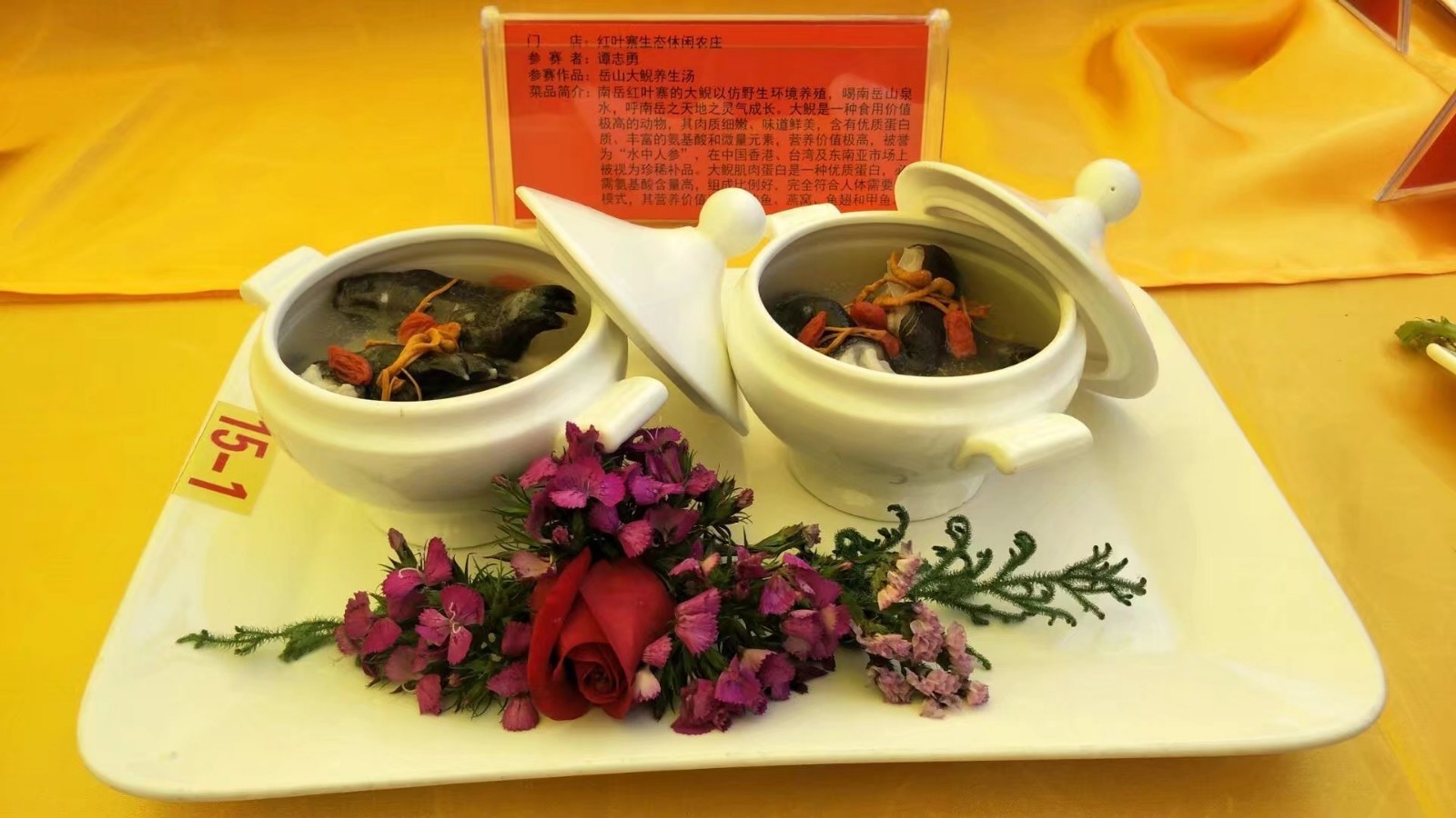 经过现场打分,红叶寨生态休闲农庄“岳山大鲵养生汤”,印象厨嫂“香煎豆腐”,汤司令宫食饭庄“剁椒蒸怀胎鲫鱼”三个菜品获得特金奖。热闹欢腾的《摆酒舞》、精彩杂技《快乐的厨师》等节目,也深深感染了现场观众。