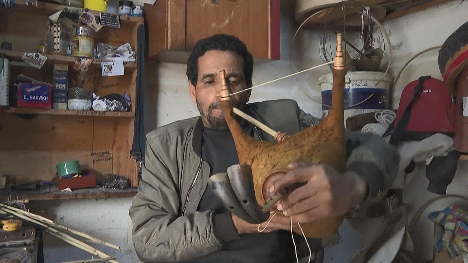 在突尼斯这家工坊内,50岁的手工艺人海米斯正在打造传统的“米兹瓦德”风笛。这种乐器的主体由羊皮和牛角组成,吹管选用的是天然芦竹。海米斯有30年制笛经验,但他表示,如今的制笛标准和以前比已经大不相同。