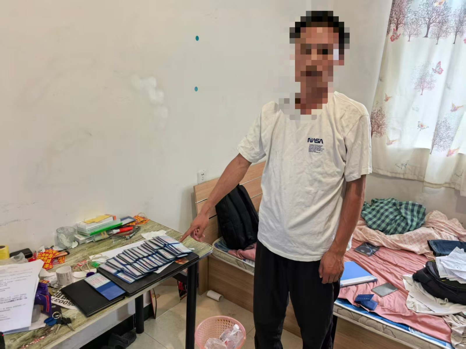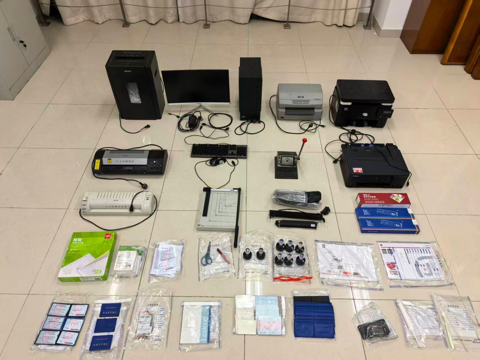 前不久,分局窗口民警在办理交通违法处理业务时,发现米某、何某、饶某三人所持机动车行驶证材质粗糙、防伪标识模糊,存在伪造嫌疑,且当事人对违法车辆的行驶轨迹、使用情况表述不清,言语间闪烁其词,分局随即启动嫌疑核查程序。经专业鉴定和询问得知,三人使用的行驶证均是从刘某处获取并在其指使下实施违法行为。分局迅速成立专案组,成功抓获非法中介刘某,现场查获电脑、手机、打印机、塑封机、切卡机等设备10余台,空白行驶证内芯、封皮、塑封膜共计450个、公章8枚、疑似伪造证件的材料若干,成功斩断一条“伪造证件—招揽客源—代扣分牟利”的犯罪链条。