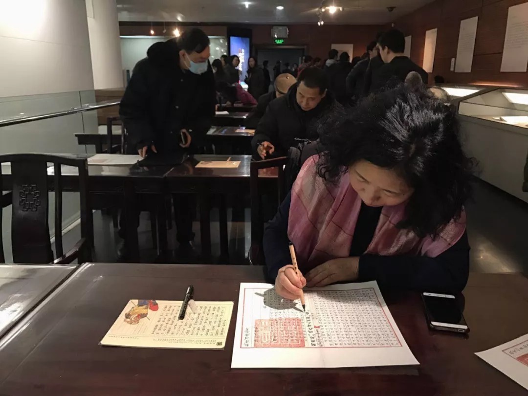 正是因为难得,所以吸引了很多的读者来这里参观学习,还可以现场抄写《四库全书》本的《论语》“学而”、《荀子》“劝学”和《诗经》“关雎”的段落。