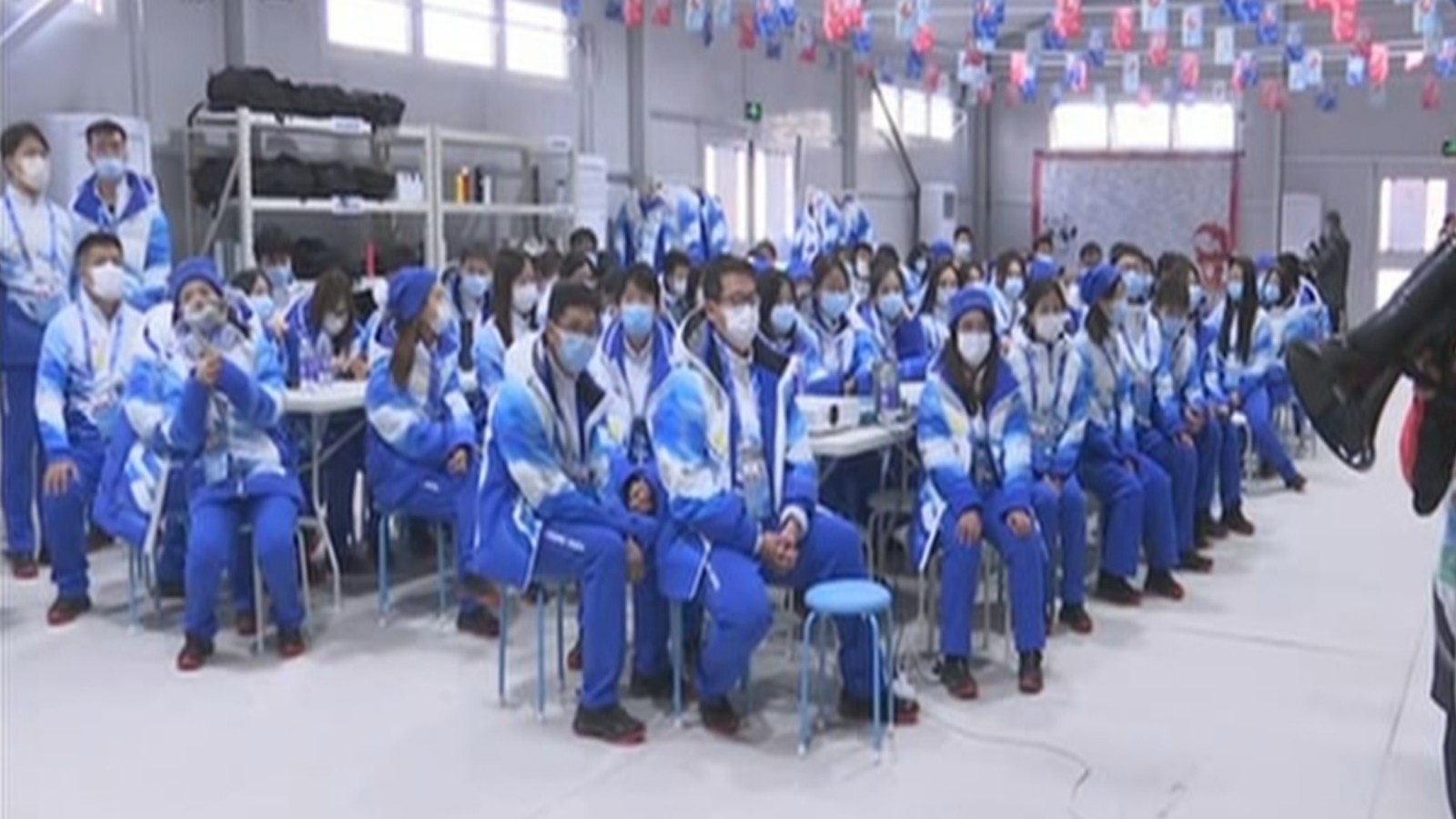 早上六点,冬奥志愿者徐益彰和同是早班岗的志愿者小伙伴一起,搬货,打扫,整理,为一整天的志愿服务工作做好准备。七点半,他们准时来到场馆门口,引导观众检票入场。