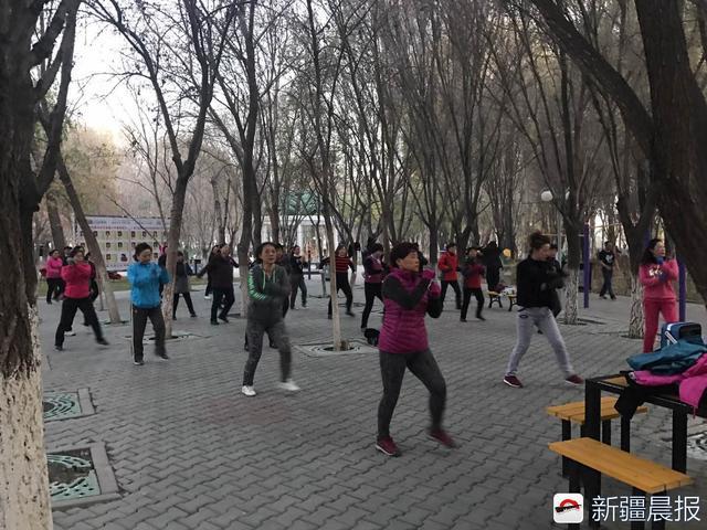 10月30日,乌市碱泉街游园,早起的市民在晨练。
