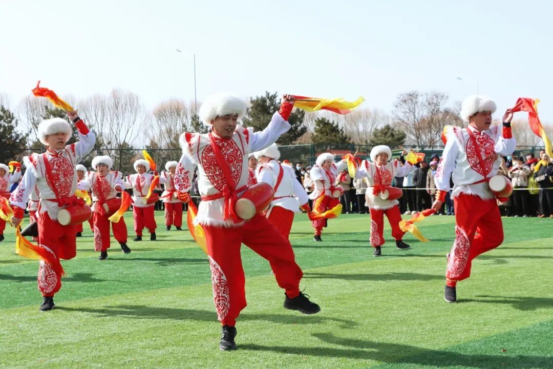 上午10:30,一阵铿锵有力的锣鼓声骤然奏响,欢快的唢呐声响彻园区,花会展演正式拉开帷幕。参演队员身着红、黄、蓝、绿等艳丽的民俗服饰,踏着韵律十足的鼓乐节拍依次登场,抬手、扭腰、腾跃间,将传统花会的独特韵味展现得淋漓尽致。现场鼓乐声、叫好声、掌声交织回荡,喜庆的节日氛围扑面而来,每一位到场观众都沉浸在这热闹的民俗盛宴之中。
