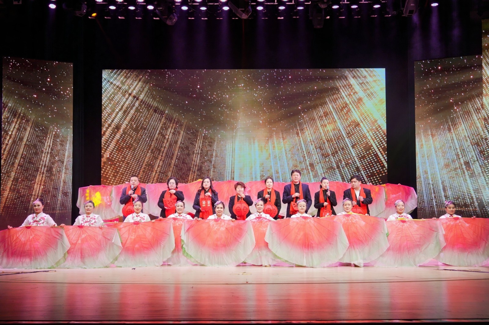 由清源街道阳光舞蹈团的阿姨们和24个社区书记一同带来的《灯火清源》奏响了新春序曲,也一同拉开了活动的帷幕。舞台上,舞者们步伐轻盈,演绎出一幅欢庆热闹的节日图景。24个社区书记向活动现场居民送上了真挚的新春祝福,让春节的喜庆氛围提前被点燃。