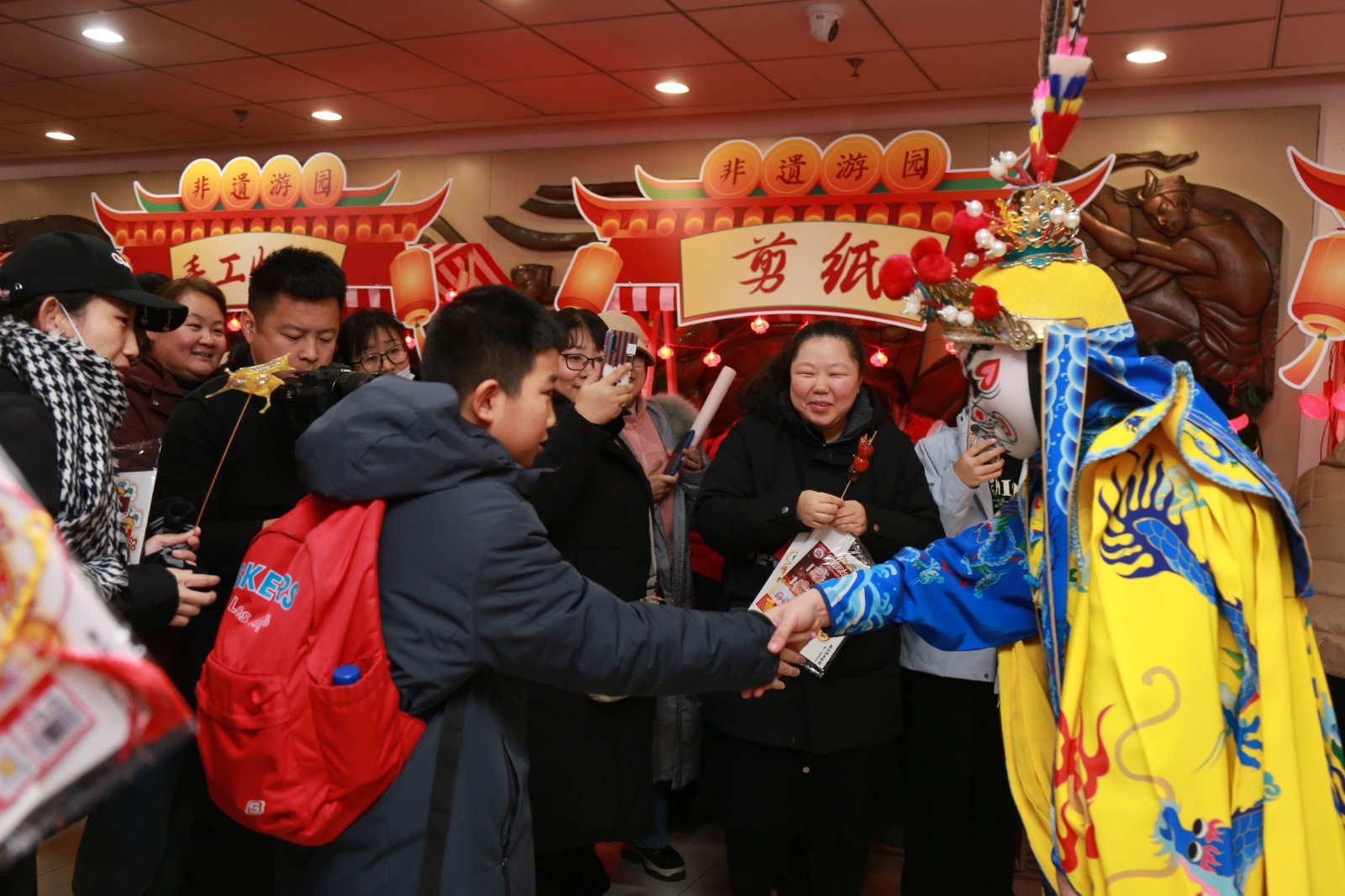 “一看到这些吹糖人、剪纸,还有那变脸表演,年味一下子就扑面而来了,一会儿里面还有咱街道自己的节目,可太期待了!”活动现场还设置了非遗体验项目,让清源居民沉浸式感受非遗文化的独特魅力,近距离领略“非遗里的中国年”,尽情品味浓浓的年味,幸福的笑脸洋溢在每个居民的脸上。吹糖人摊位前,师傅们手法娴熟,一个个栩栩如生的糖人在他们手中诞生,引得孩子们驻足围观,眼中满是好奇与惊喜。变脸表演更是让人目不暇接,表演者瞬间变换的脸谱,赢得了阵阵喝彩。剪纸摊位上,居民们在老师的指导下,亲手剪出精美的图案,将对新年的美好祝福融入其中……