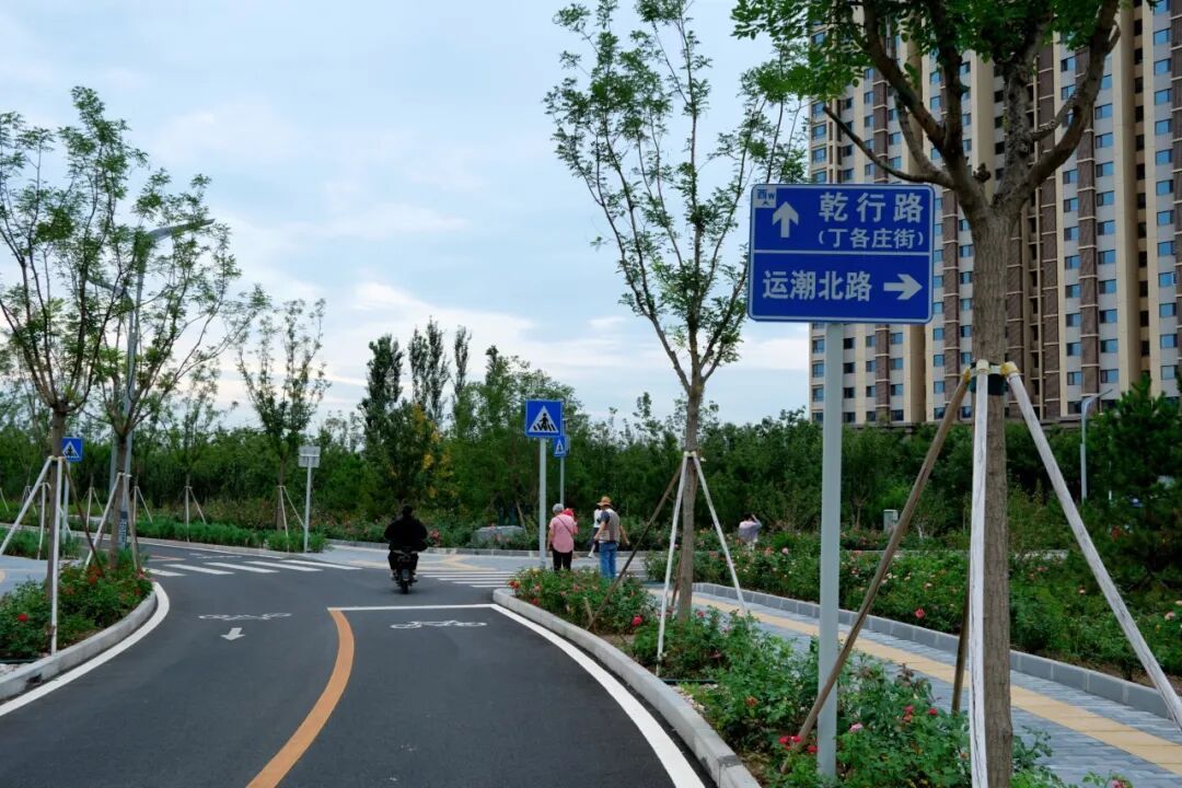这条多功能慢行道通道长2.98公里。南起东古城街、北至六合东西路,串联行政办公区、路县故城遗址公园、减河公园与居民社区。