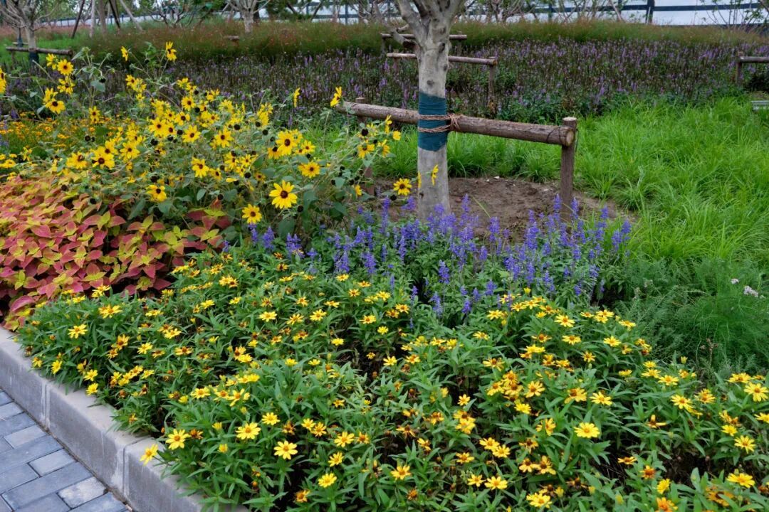 其中“高林寻芳”段最让市民惊艳,仅海棠就选用21个品种、1383株,搭配迎春、连翘、丁香等1857株花灌木以及大花月季、蓝花鸢尾、千屈菜等数十种宿根花卉,植物种类累计超千种,堪称“移动的植物博物馆”。
