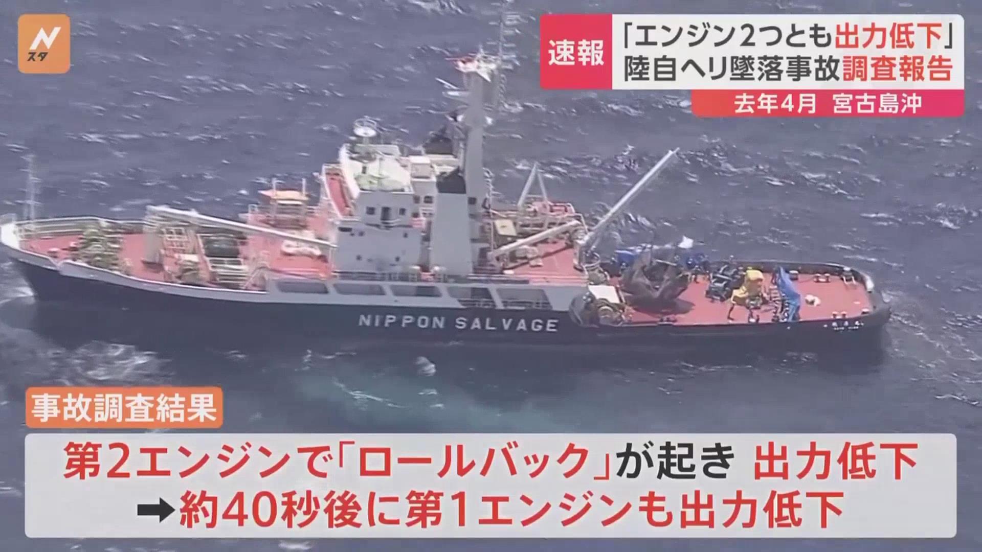 日本防卫省发布的调查报告称,去年4月在冲绳县宫古岛附近海域发生的陆上自卫队直升机坠毁事故的原因为,直升机左右两侧引擎相继出现输出功率下降。
