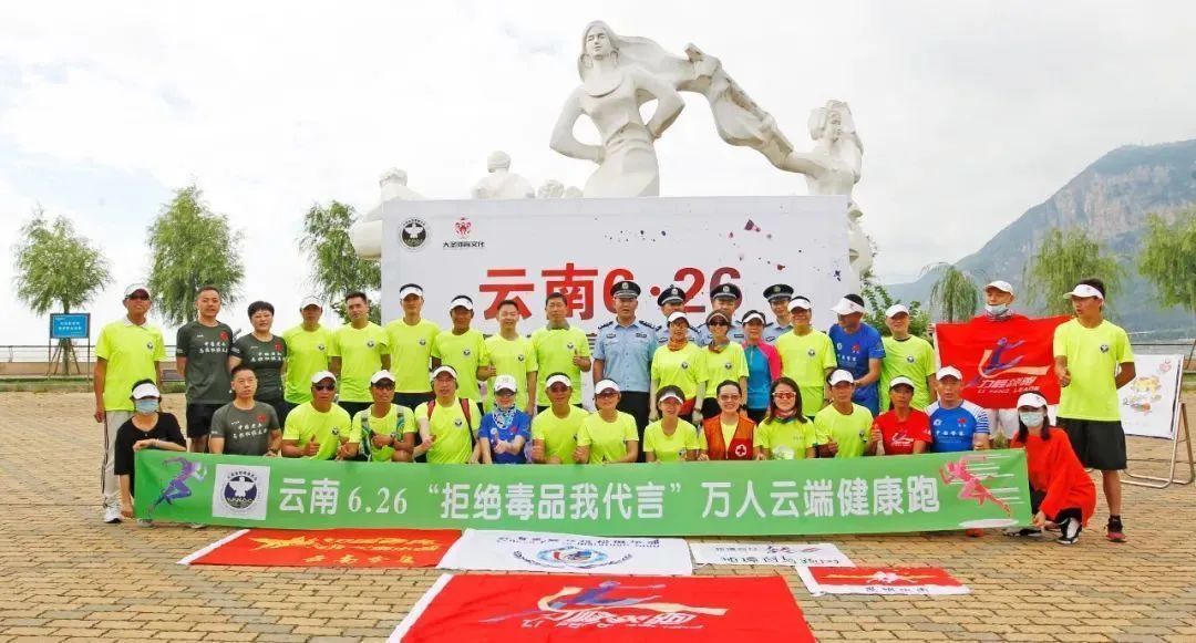 云南省6·26“拒绝毒品我代言”万人云端健康跑在昆明市海埂公园内举行线下启动仪式。云南省禁毒办携手知名运动员代表、云南警察马拉松俱乐部代表、昆明各大跑团代表及社会人士,共同完成了6.26公里的跑步活动,以实际行动倡导“健康人生,绿色无毒”。