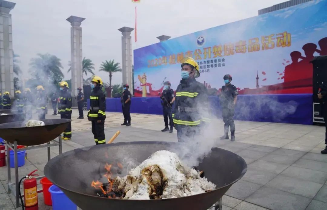 作为广西壮族自治区禁毒主题宣传教育活动会场之一,桂林市于国际禁毒日前夕在临桂区市民广场举办“6•26”公开销毁毒品活动。