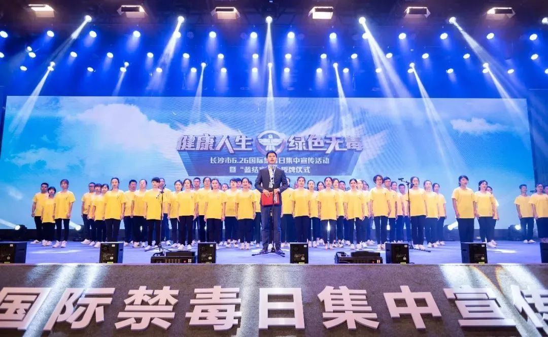 湖南省长沙市禁毒委员会、长沙市公安局和长沙市互联网群防群治联合会主办,长沙市社会禁毒协会和浏阳市禁毒委员会协办的——“健康人生,绿色无毒”6.26国际禁毒日集中宣传活动暨“蓝结家园”授牌仪式在位于浏阳市的蓝思科技园区举行。