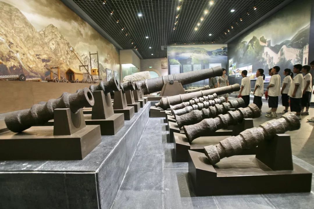 图1:山海关长城博物馆内展出的长城火炮 图/图虫·创意;图2:2019年10月,辽宁雨桐玉文化博物馆正式开馆,备受瞩目的巨型玉雕长城也揭开了它的面纱图/水印