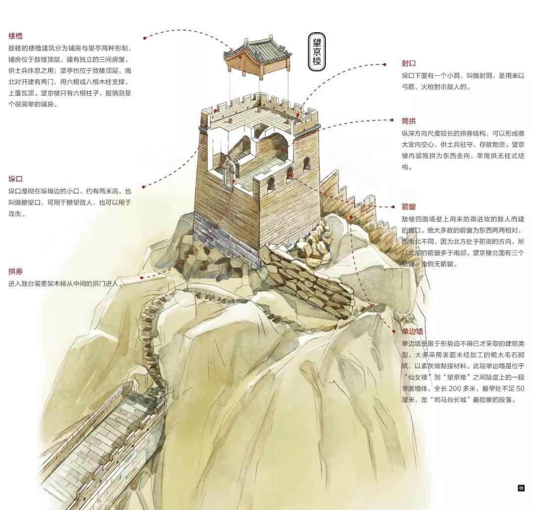 司马台“望京楼”解构,然而这样细致的防御体系更多属于冷兵器时代。手绘/林天意,制图/杨恒 截取自《风物中国志·密云》