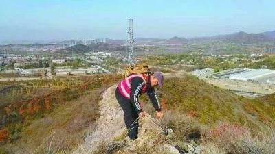 长城保护队队员在清理长城遗址周边的杂草 图/网络