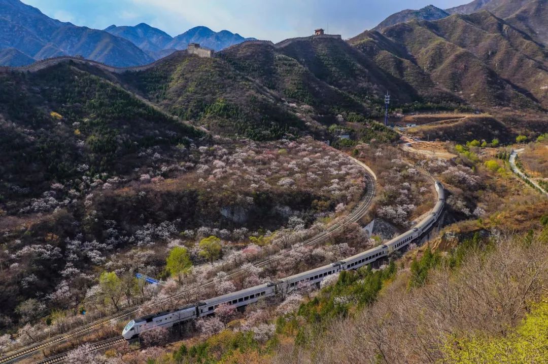居庸关长城,开往春天的列车正从城下过图/图虫·创意