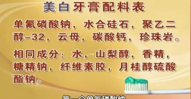 美白牙膏中的云母、碳酸钙、珍珠岩,是一类摩擦剂,主要去除口腔里的茶渍、烟斑、咖啡渍等。