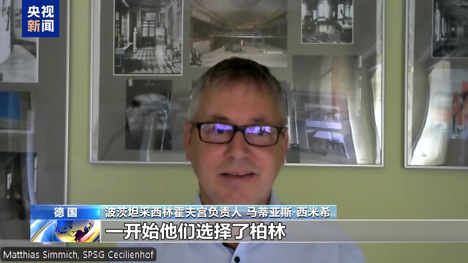波茨坦采西林霍夫宫负责人 马蒂亚斯·西米希:一开始他们选择了柏林,但柏林城内的破坏如此严重,以至于他们找不到一个地方来让反希特勒联盟的代表们举行如此盛大的会议。于是,他们把目光投向了稍远的地方,波茨坦离柏林很近。
