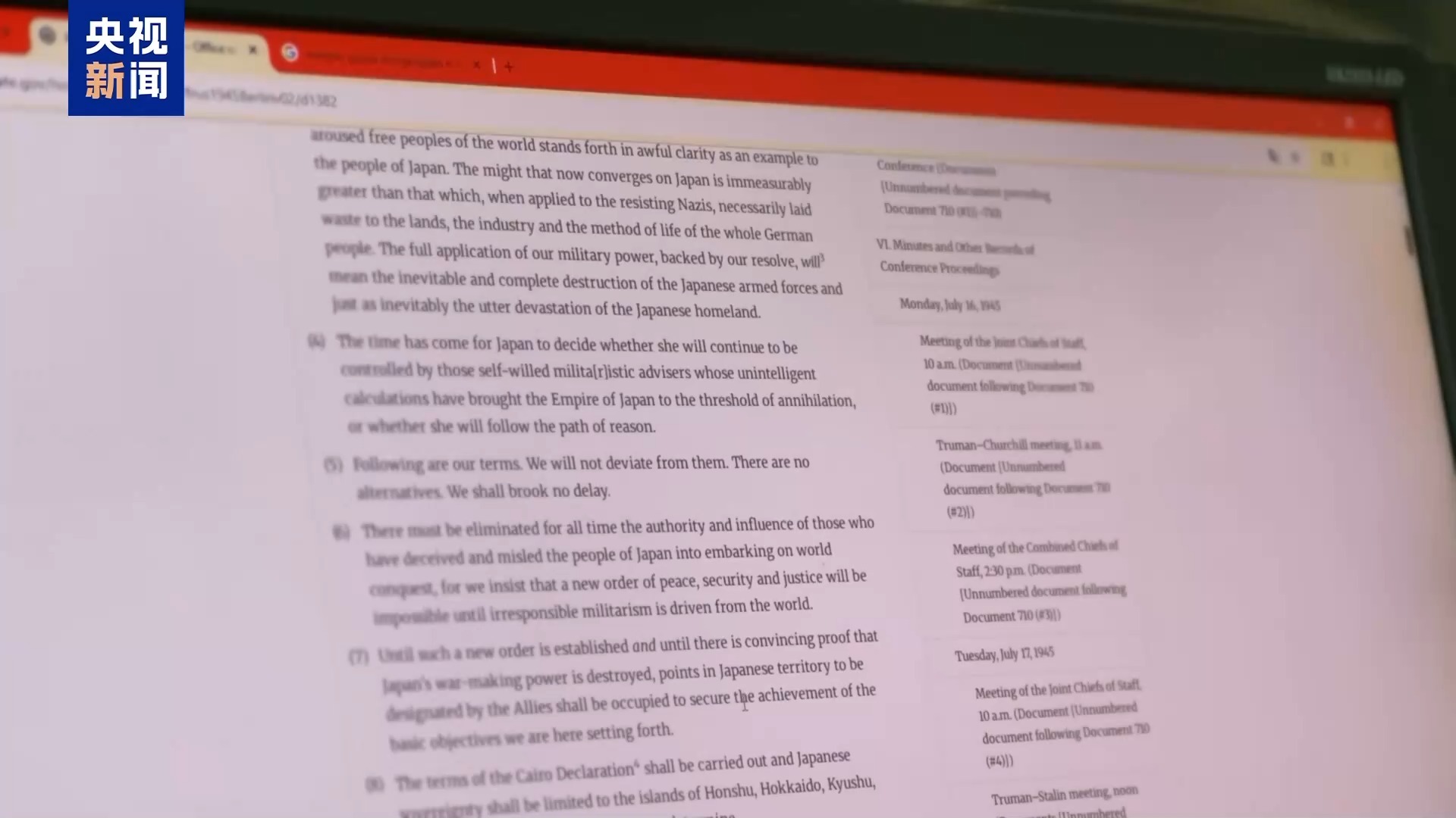 总台记者 康玉斌:《波茨坦公告》不仅宣告了法西斯战争的终结,更为战后和平秩序奠定了基石。80年后的今天,它依然提醒着我们,正视历史,是对未来最深沉的守护。铭记,不是为了延续仇恨,而是为了确保和平不再失守。