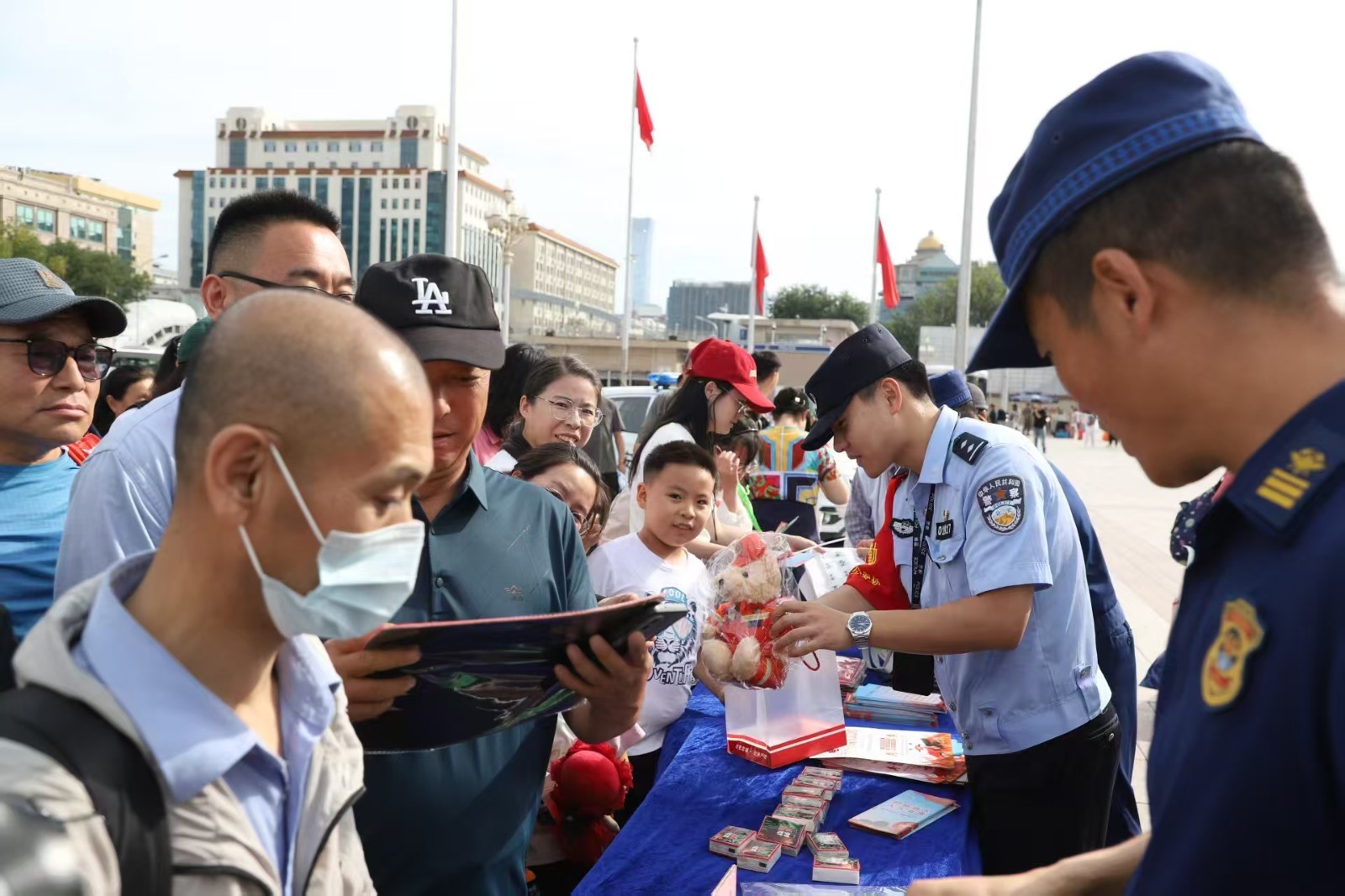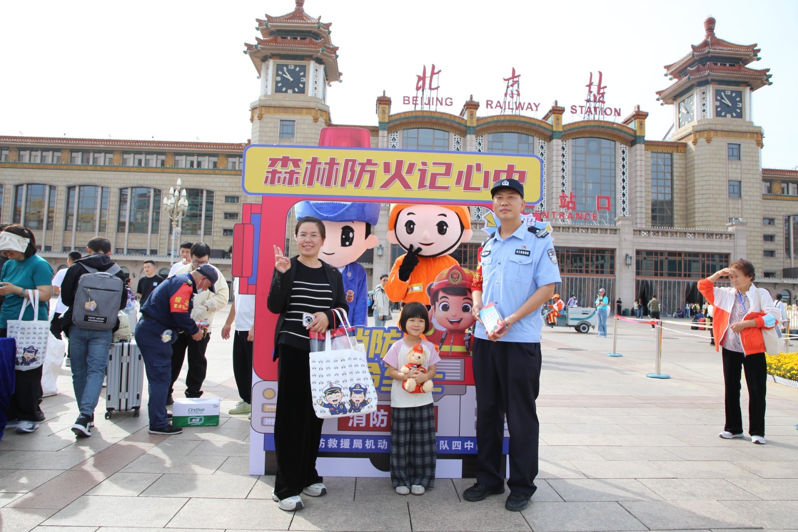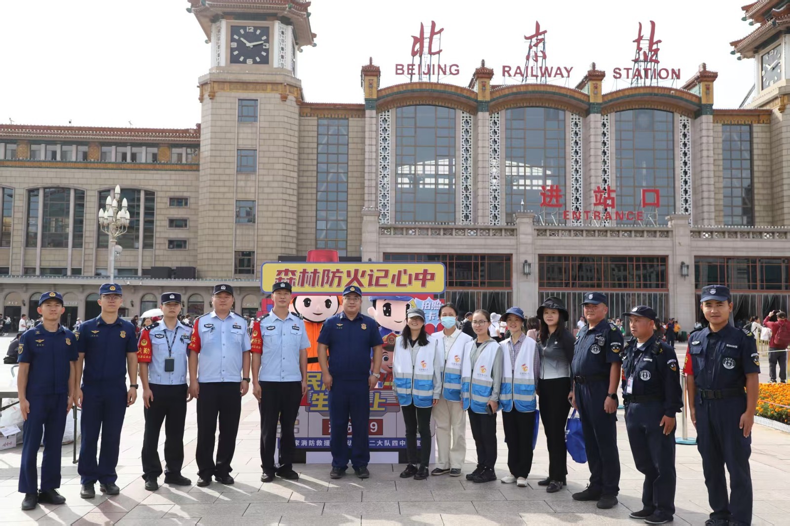 10月1日国庆节当天,北京站迎来客流高峰。为保障旅客安全,北京站派出所会同国家消防救援局机动支队房山分队、北京站重点地区管委会等单位,在北京站广场北侧开展以安全出行为主题的宣传活动。