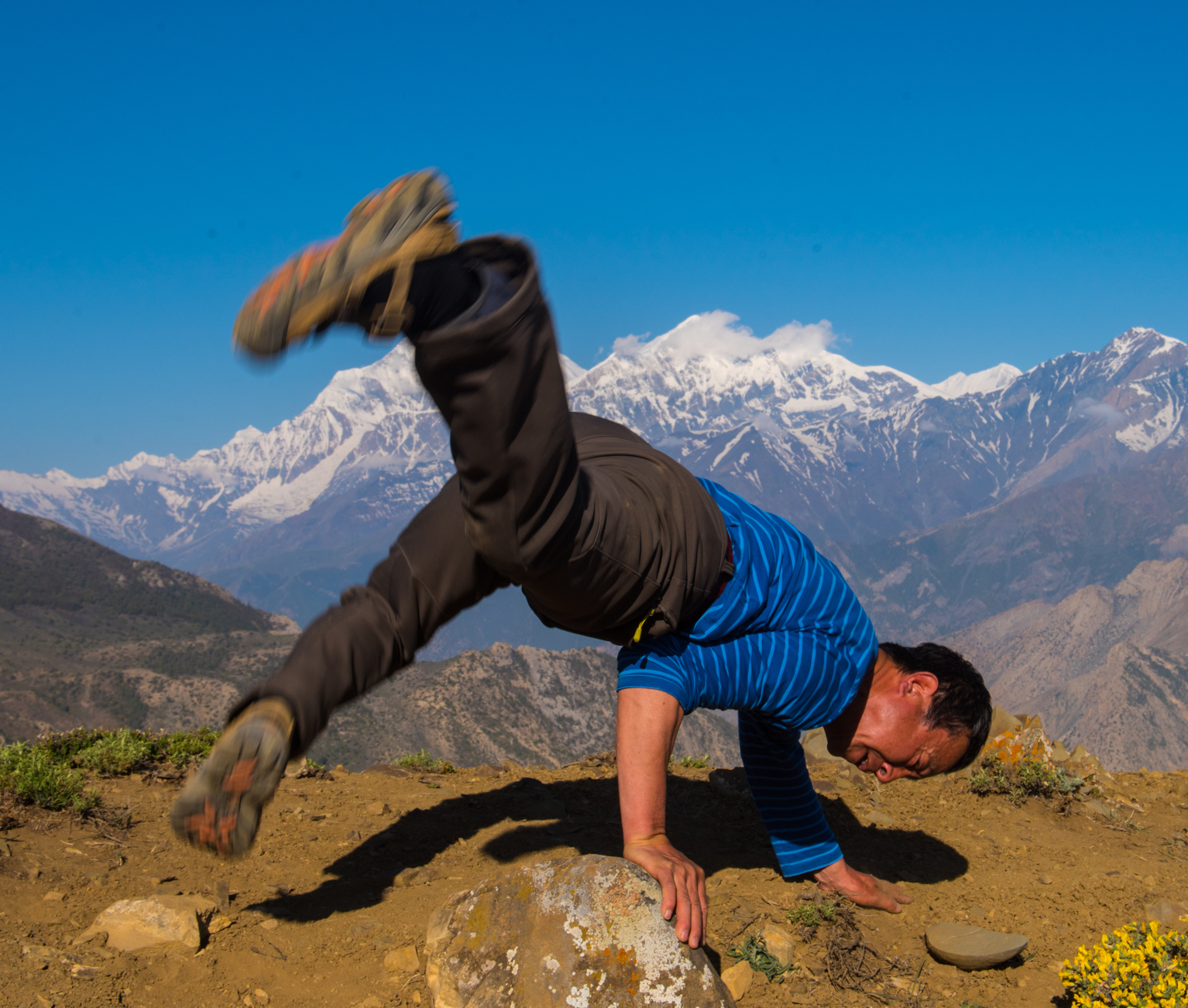 60岁的张超音在6000米做托马斯全旋 背后是8172米的道拉吉里峰