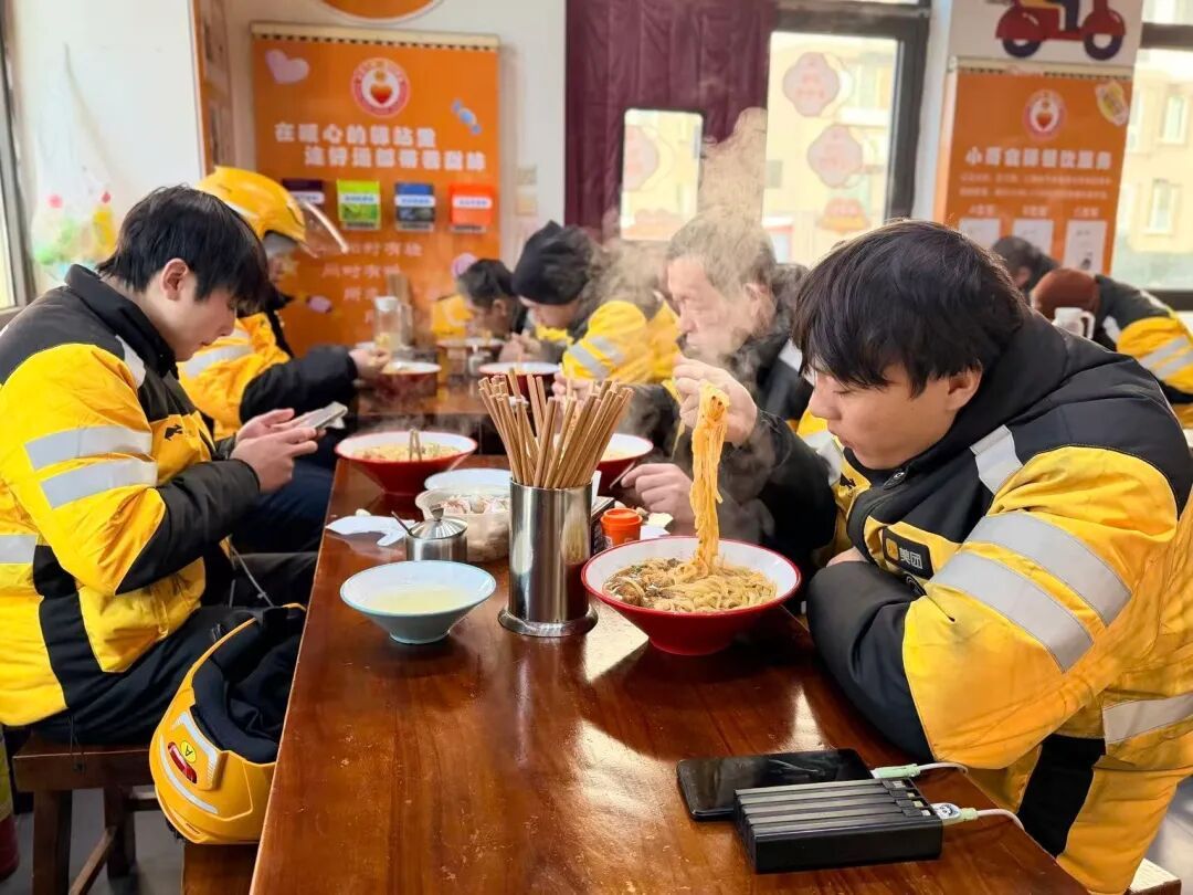 “今天中午跑了多少单?累不累?”“这几天气温降得厉害,多穿两层,别冻着!”胡肖峰端着热面穿梭在餐桌间,边递餐边和外卖骑手聊天,叮嘱大家注意保暖、劳逸结合。“好多骑手都成了熟面孔,相处得像家人。”他说,当初社区提议合作打造“小哥食驿”,考虑到能为辛苦奔波的外卖骑手添便利、送温暖,他立刻就答应了。