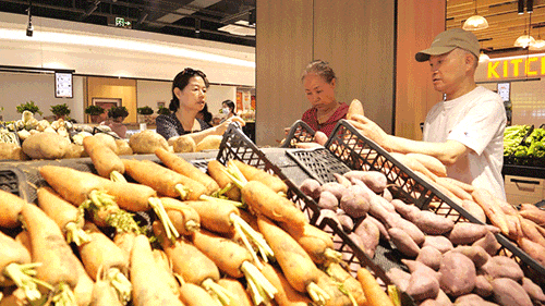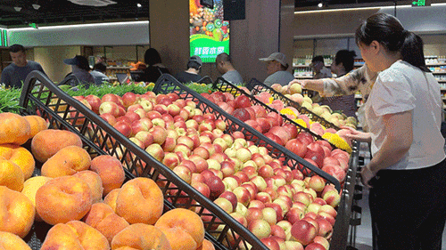 试营业期间,有不少居民前来挑选心仪的商品。超市内明亮整洁,蔬菜、水果、肉类一应俱全,日供生鲜产品达百余种。亲民的价格、便捷的服务,让不少居民连连称赞。