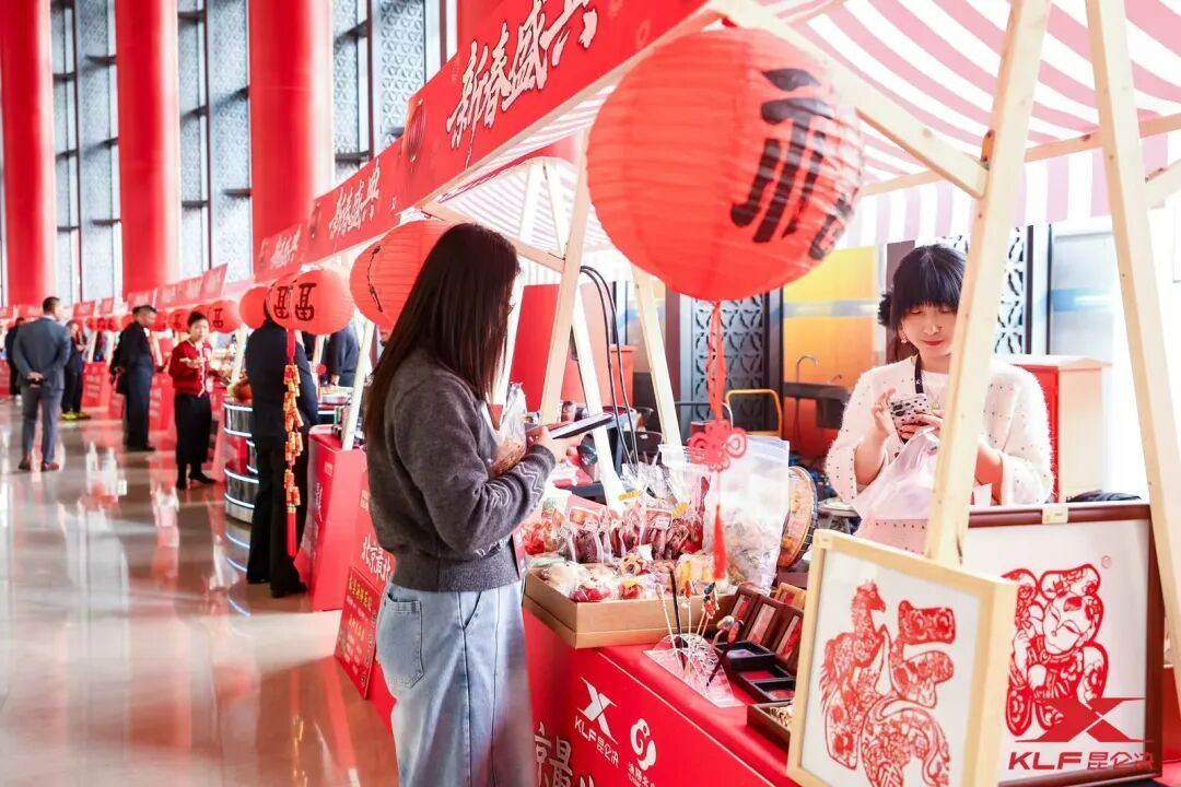 来到雁栖湖国际会展中心连廊内的市集现场,氛围感直接拉满。一个个特色摊位整齐排布,餐饮、美容、服饰、文创等多元品类一应俱全,喜庆的马年装饰点缀其间,让市民游客一踏入市集,就能感受到浓浓的年味与热闹劲儿。