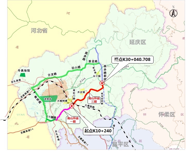 南山环线三期作为延庆区“三横五纵”公路网骨架的重要组成部分,也是延庆区百里骑行专线的重要组成路线。项目最早于2011年提出设想,经历了12年前期谋划、项目立项等准备工作,2023年3月正式开工建设,在近3年的建设之后,终于形成了这条串联延庆东西的重要通道,完成了延庆平原地区大环线的最后一块拼图。