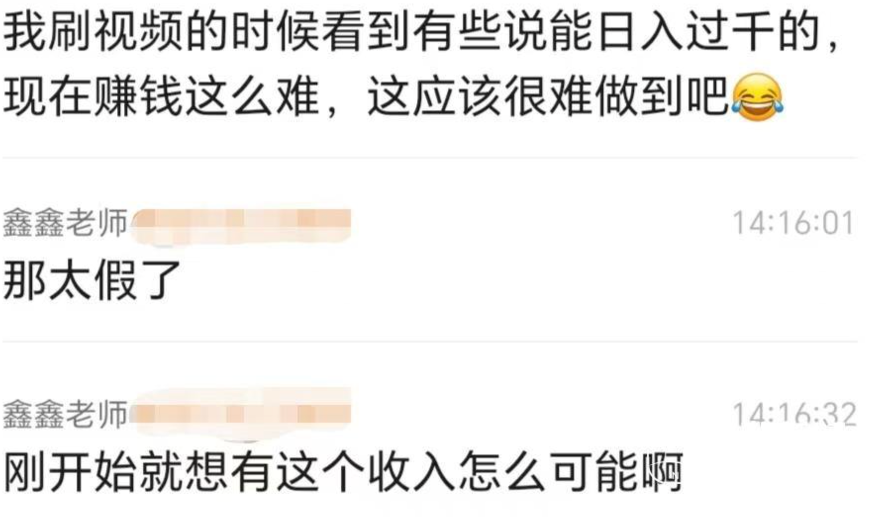 “那太假了,刚开始就想有这个收入,怎么可能!”