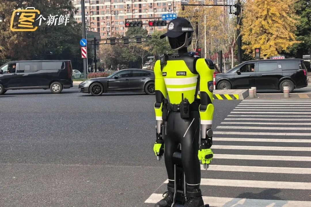 AI警员“杭行1号”在杭州街头辅助执勤图源:“杭州发布”微信公众号