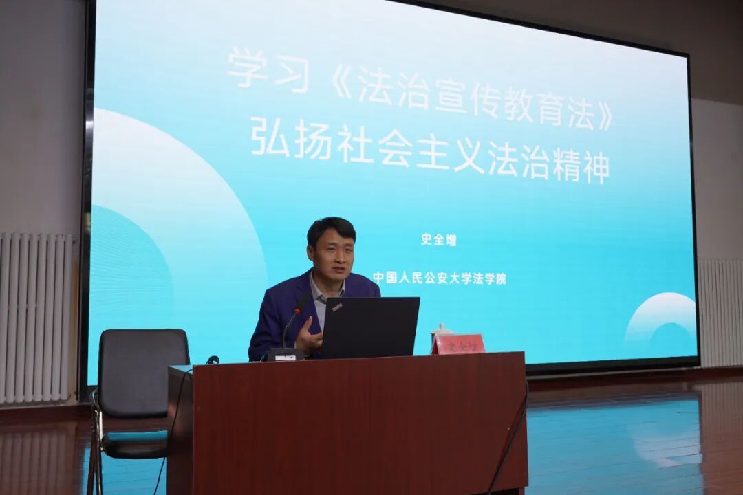 《中华人民共和国法治宣传教育法》已于2025年11月1日施行,对各类主体履行普法责任作出系统性制度安排,进一步压实了各方工作责任。为大力学习宣传贯彻新颁布法律法规,此次活动邀请中国人民公安大学法学院史全增教授现场开展了《中华人民共和国法治宣传教育法》专题法治讲座。
