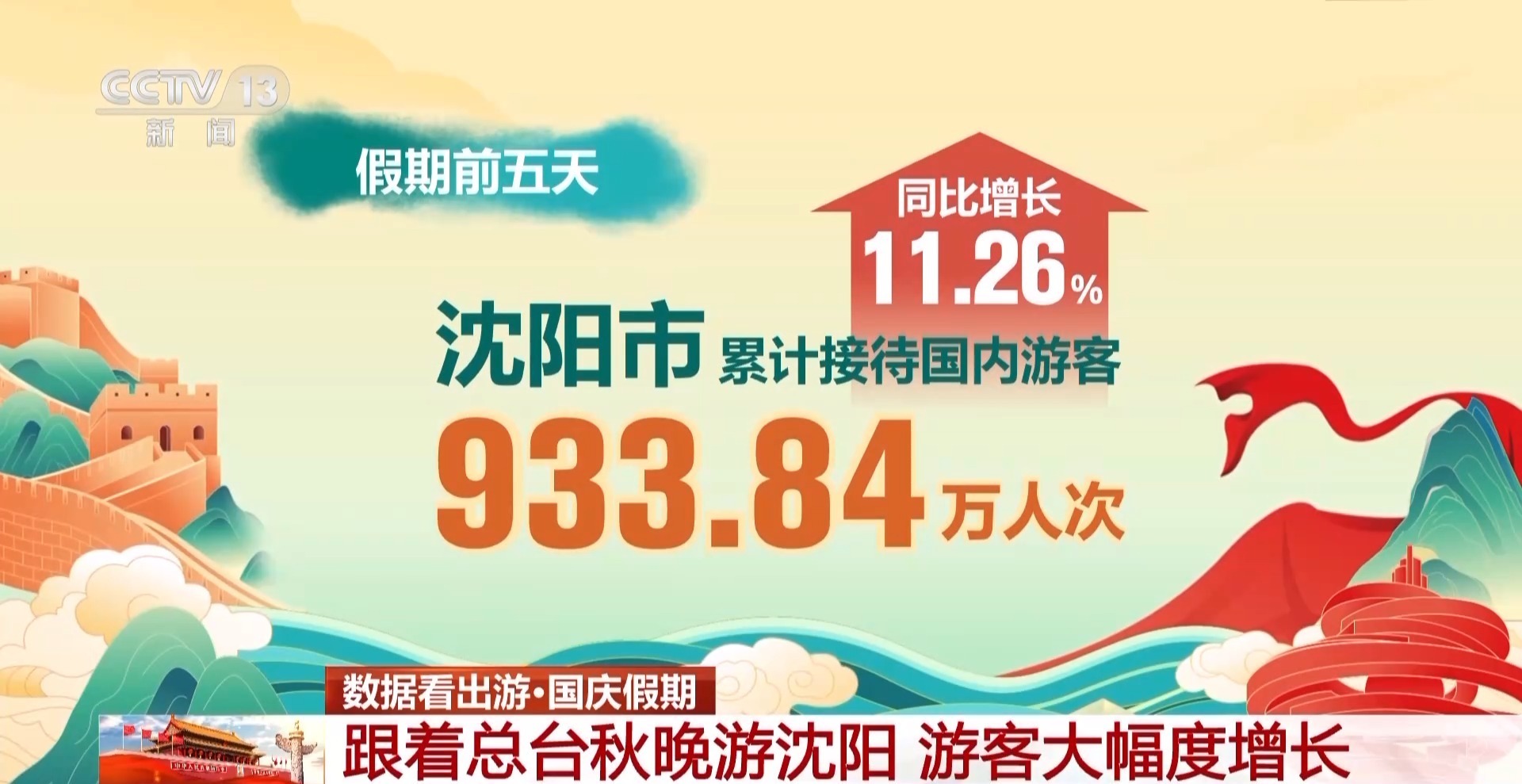 随着日前2024总台秋晚在辽宁沈阳成功举办,国庆期间,游客纷纷跟着秋晚打卡沈阳。据沈阳市文旅局初步统计,截至昨晚(5日)8点,假期前五天,沈阳市累计接待国内游客933.84万人次,同比增长11.26%。
