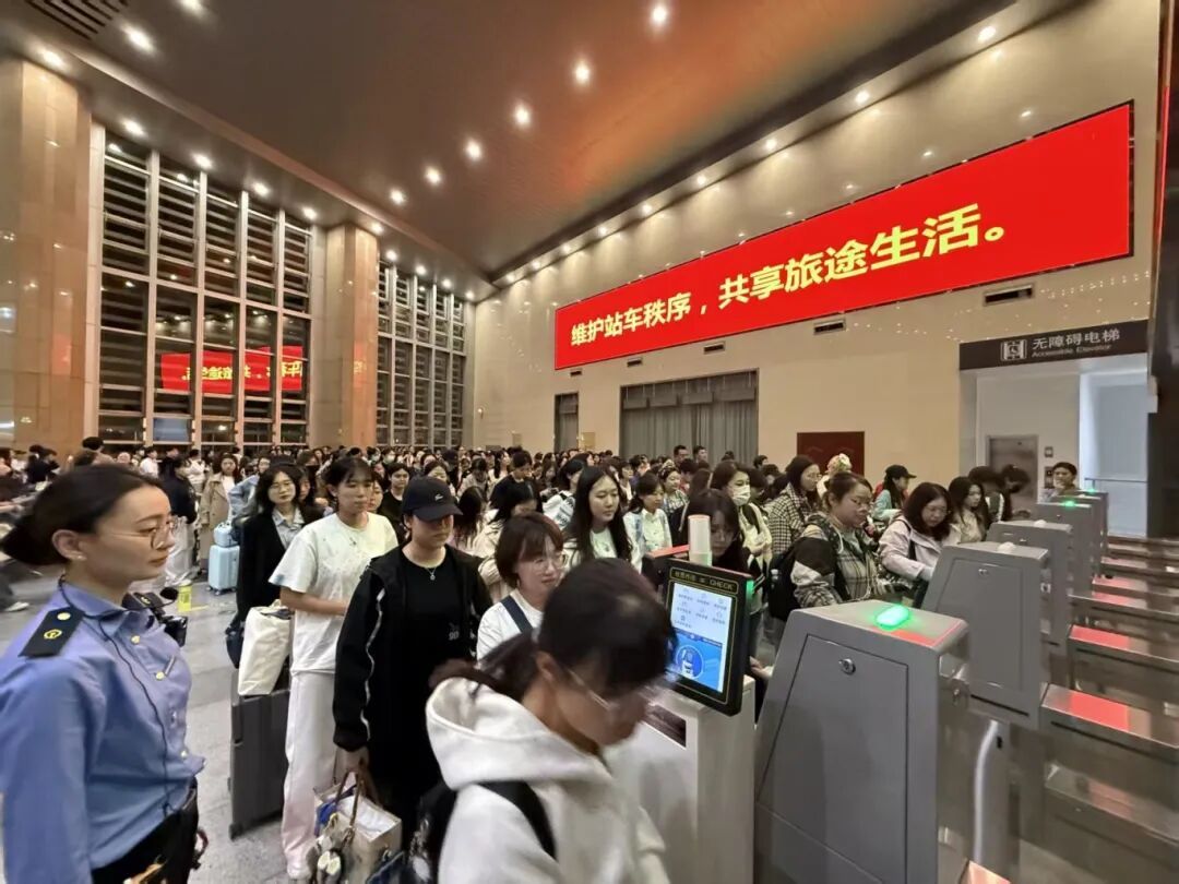 10月8日凌晨,国铁北京局开行C2076次、G4806次两趟夜行“歌迷专列”,从天津站分别开往北京南站和上海虹桥站,精准对接夜间演出活动散场后的客流需求。为确保夜间运输安全有序,天津站制定专项服务保障方案,并将天津站北地下进站口营业时间延长至凌晨1时20分,较常规夜间关闭时间推迟1小时20分。除日常当班人员外,该站抽调多名业务骨干组成服务队,在候车厅、进站通道等区域加大播报列车信息频次,在站台上设置宣传引导流动岗,车站还联系铁路公安处和相关部门增派人员加强各部位巡逻,协助维护现场秩序,引导歌迷旅客有序乘车。