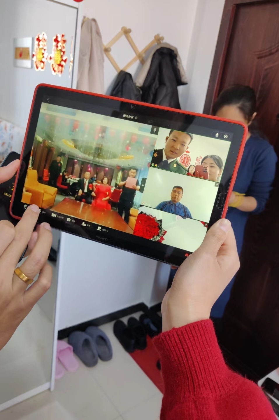 2022年5月2日对于指导员王特来说,一定是他一生中最难忘的日子。他身着军礼服,要与新娘完成一场三地同时进行的婚礼。