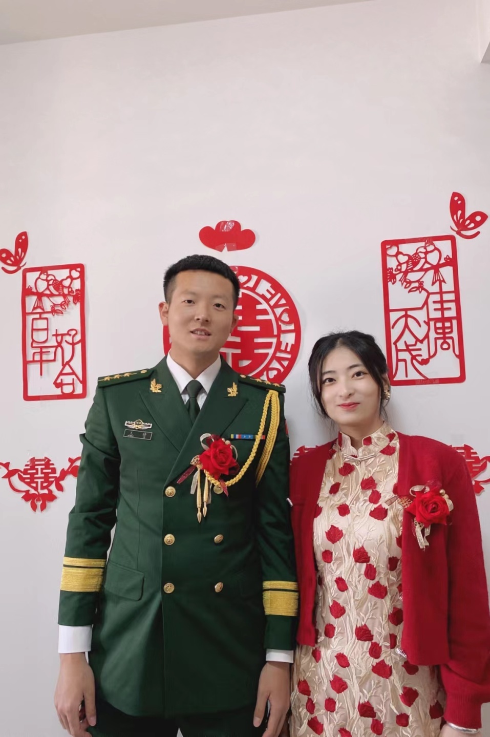 2020年5月,两人把短暂的假期凑在一起,到民政局领了“红本本”。为了能够让婚礼办得热闹,留下一个幸福难忘的回忆,双方家人为此做了精心的准备,最终因任务和疫情推迟到了今年5月2号举行。