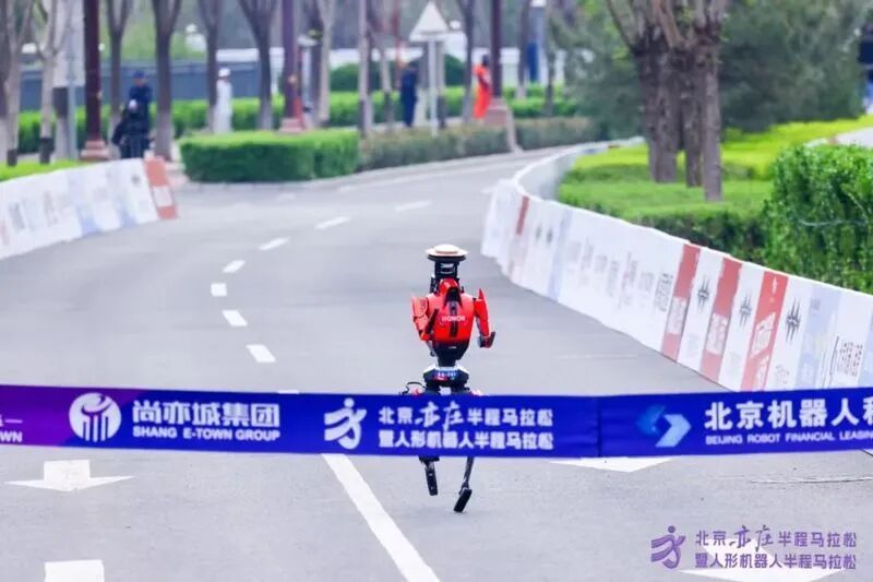 本届机器人冠军“闪电”机器人冲线时刻/来源:北京亦庄半程马拉松组委会