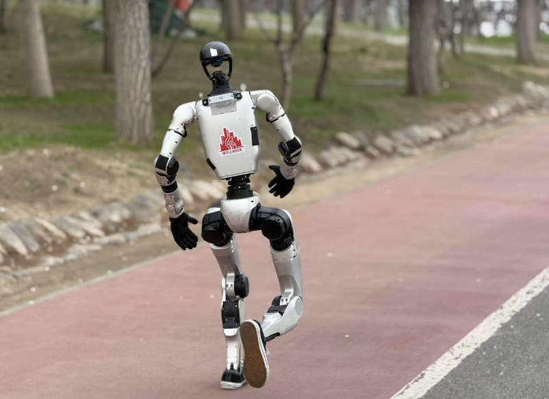 4月19日上午,2026北京亦庄半程马拉松暨人形机器人半程马拉松顺利完赛。超百支人形机器人赛队和1.2万名人类跑者共同参赛。